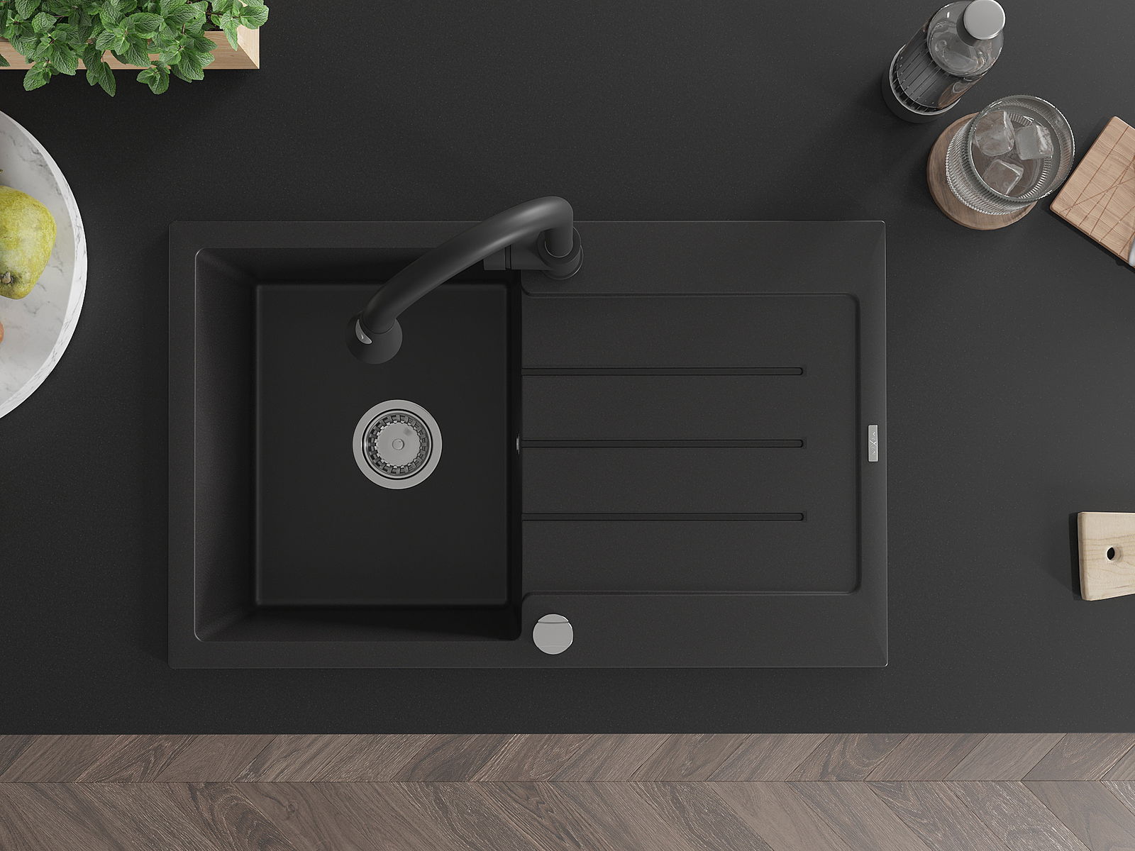 La surface de l'évier est très bien trempée et se distingue par une résistance exceptionnelle aux dommages mécaniques et aux rayures. Ce matériau durable vous permettra de profiter de son bel aspect pendant de nombreuses années.