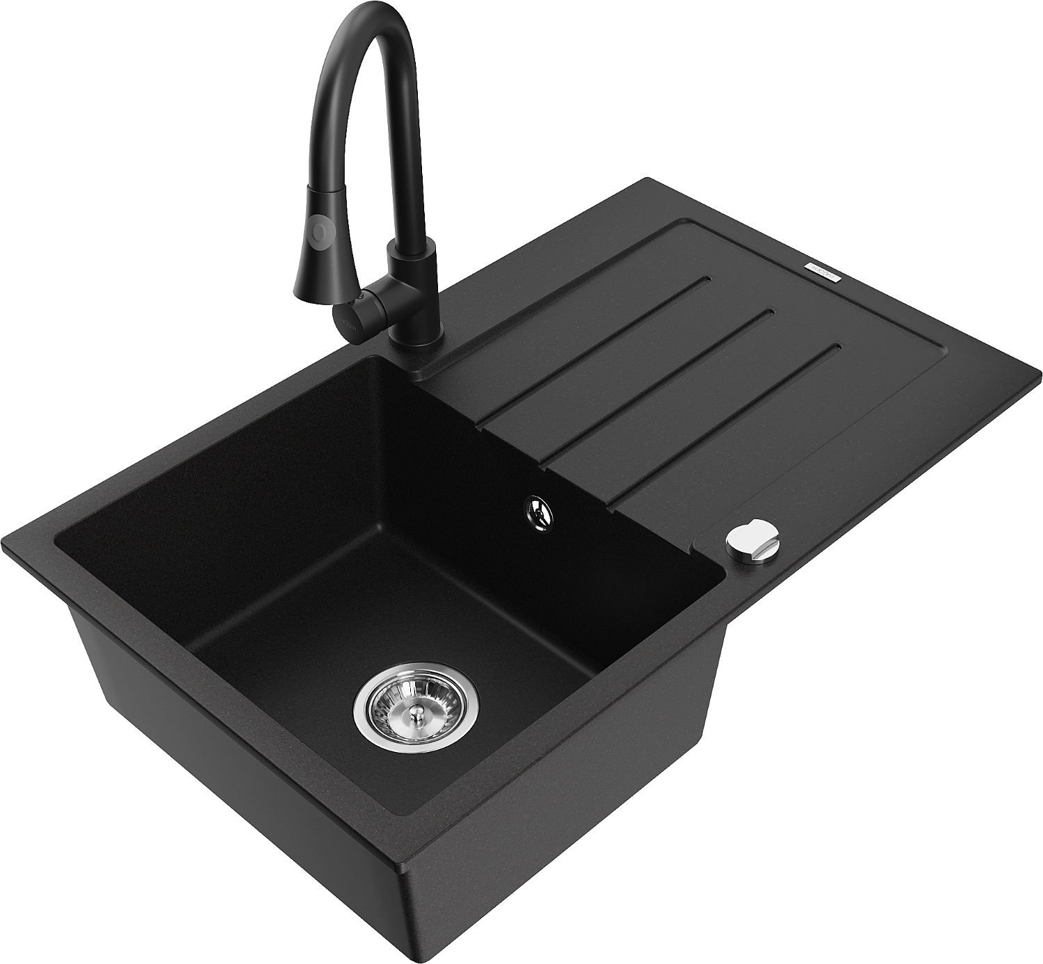 Mexen Bruno évier en granit à 1 bac avec égouttoir et robinet de cuisine Elia, noir - 6513-77-670101-70