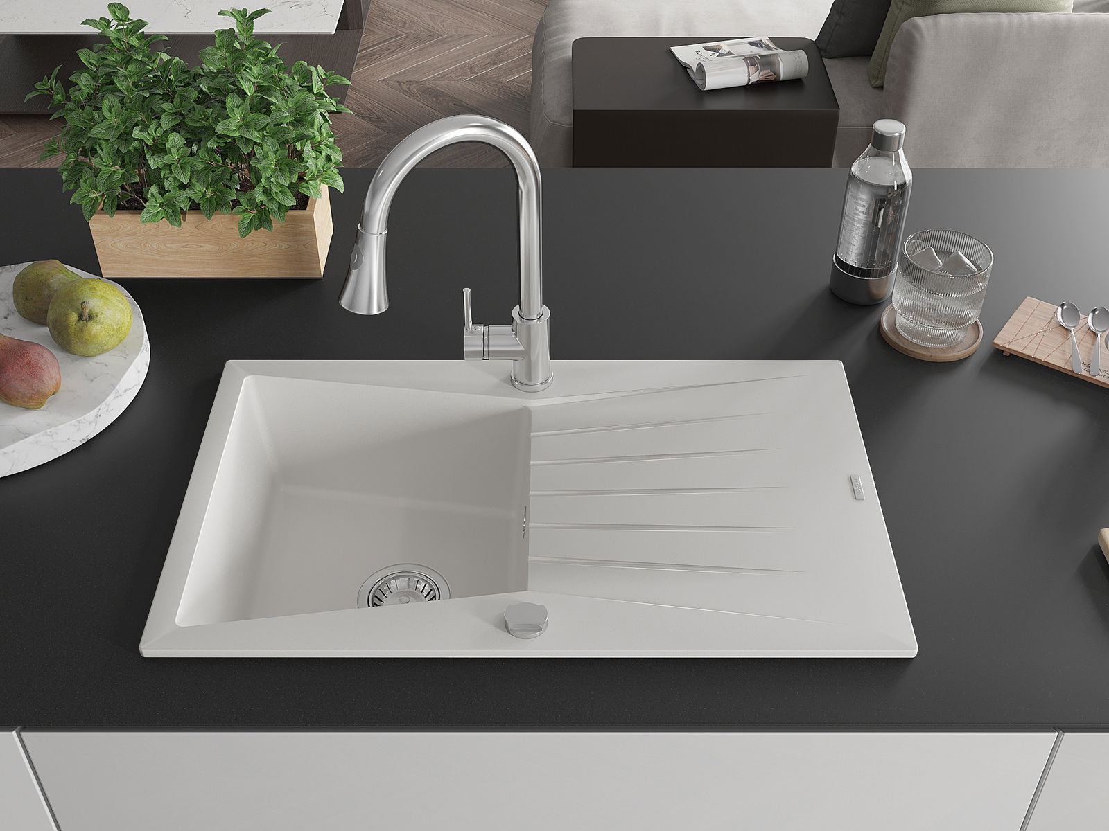 L'évier est fabriqué en granit de haute qualité. Il constitue un complément élégant et surtout pratique pour toute cuisine, quel que soit son style. La qualité et la durabilité du granit garantissent de nombreuses années d'utilisation.