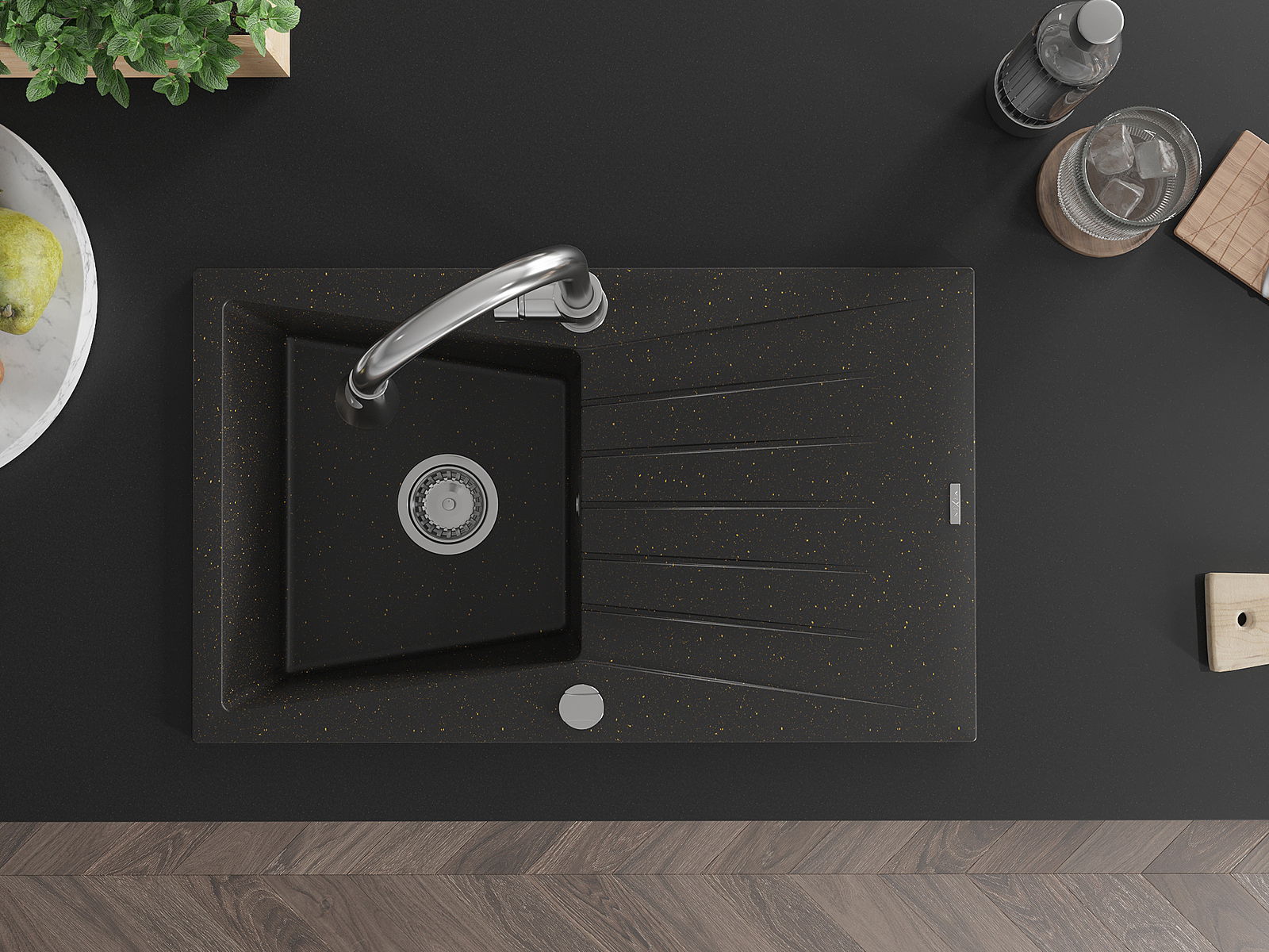 La surface de l'évier est très bien trempée et se distingue par une résistance exceptionnelle aux dommages mécaniques et aux rayures. Ce matériau durable vous permettra de profiter de son bel aspect pendant de nombreuses années.