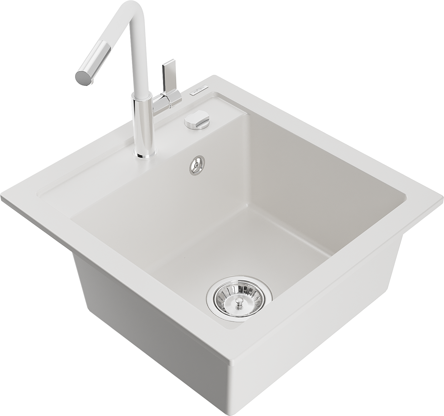 Mexen Vito évier en granit à 1 bassin avec robinet de cuisine Flora, blanc - 6503-20-670401-02