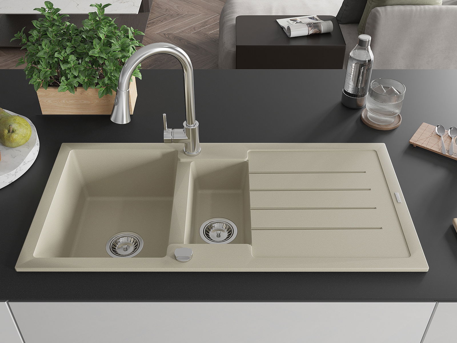 L'évier est fabriqué en granit de haute qualité. Il constitue un complément élégant et surtout pratique pour toute cuisine, quel que soit son style. La qualité et la durabilité du granit garantissent de nombreuses années d'utilisation.