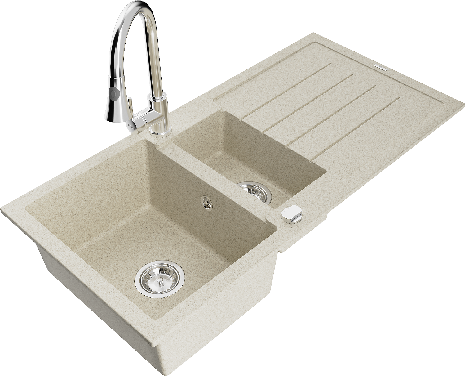 Mexen Andres évier en granit 1,5 cuves avec égouttoir et robinet de cuisine Elia, beige - 6515-69-670101-00