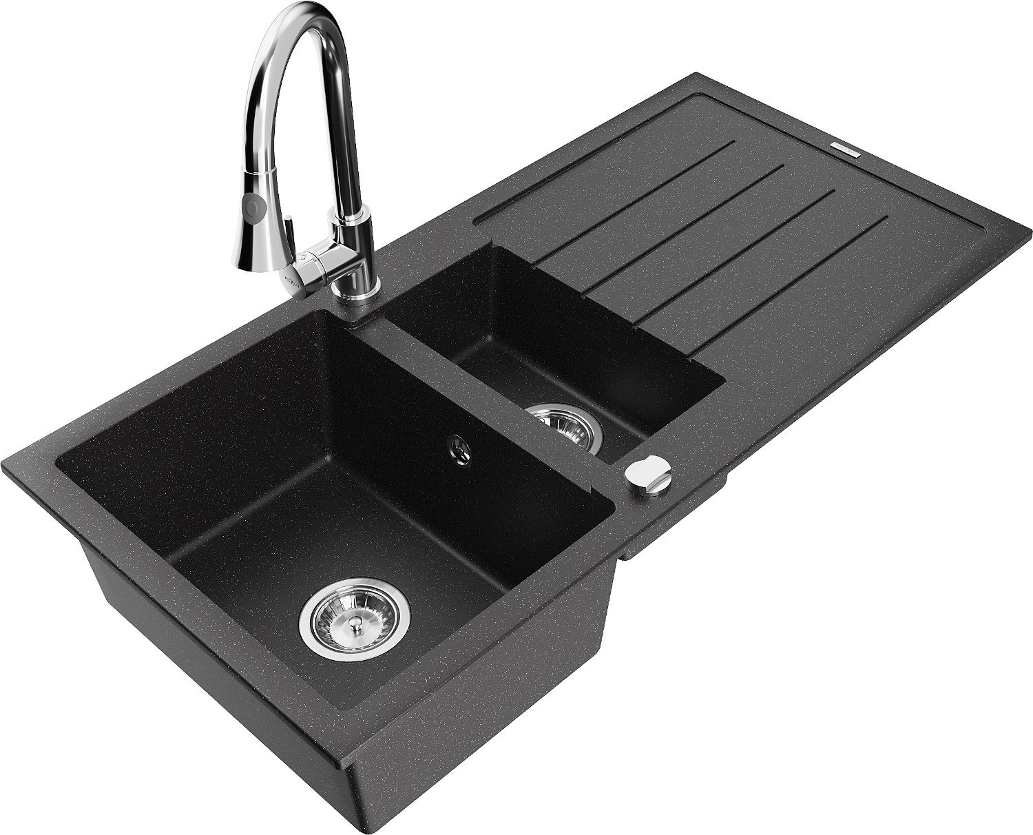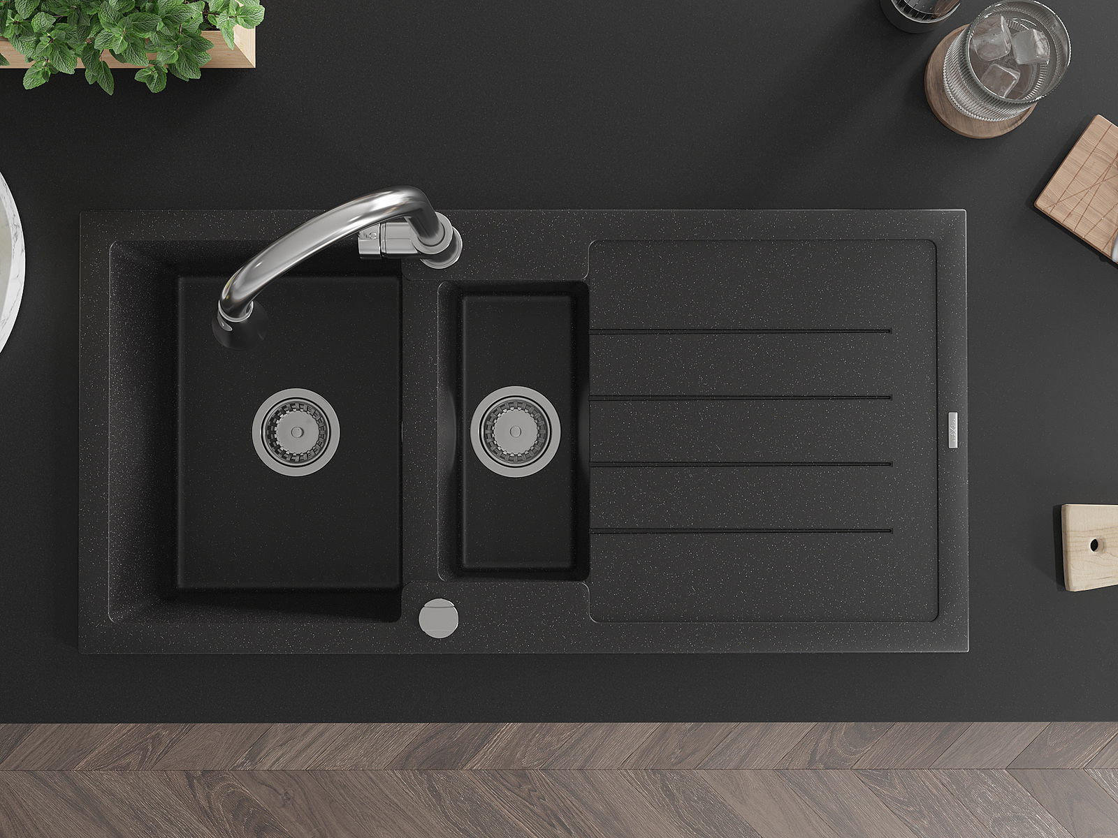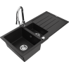 Mexen Andres évier en granit 1,5 cuves avec égouttoir et robinet de cuisine Elia, noir/argent métallique - 6515-73-670101-00