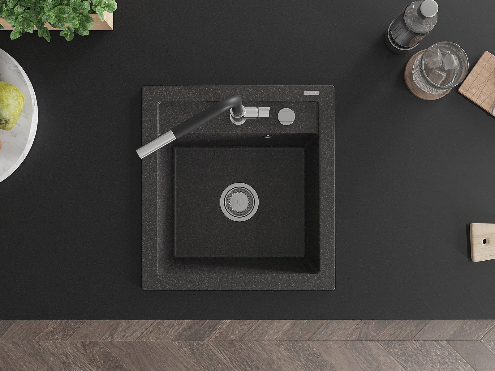 Mexen Vito évier en granit 1 bac avec robinet de cuisine Flora, noir moucheté - 6503-76-670401-07