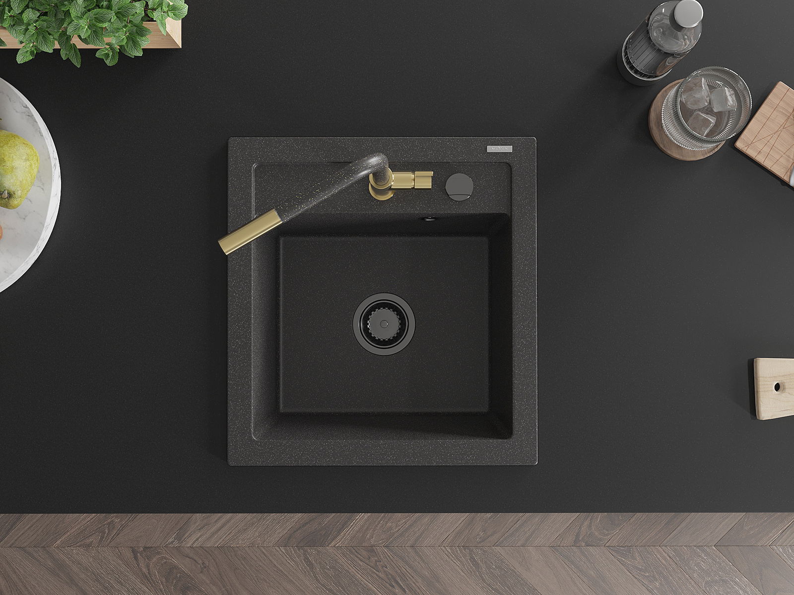 Mexen Vito évier de cuisine en granit 1 bac avec robinet de cuisine Flora, noir moucheté - 6503-76-670401-75-B