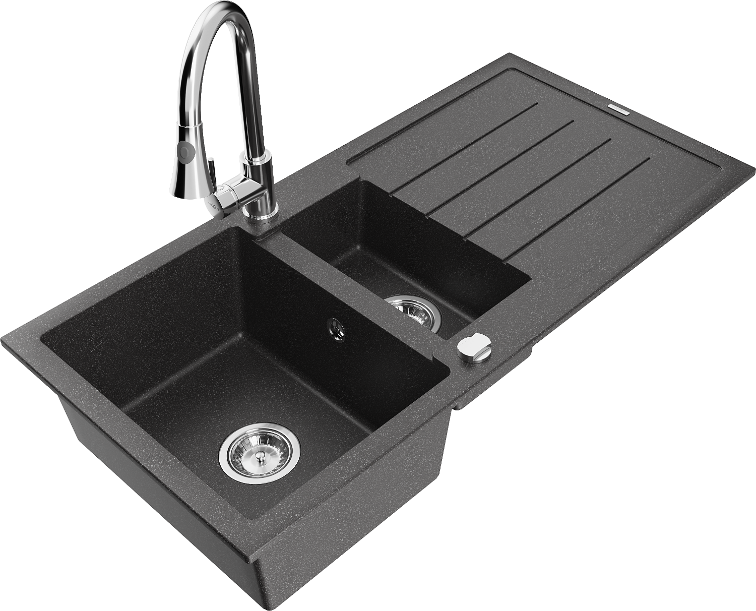 Mexen Andres évier en granit 1,5 bac avec égouttoir et robinet de cuisine Elia, noir moucheté - 6515-76-670101-00