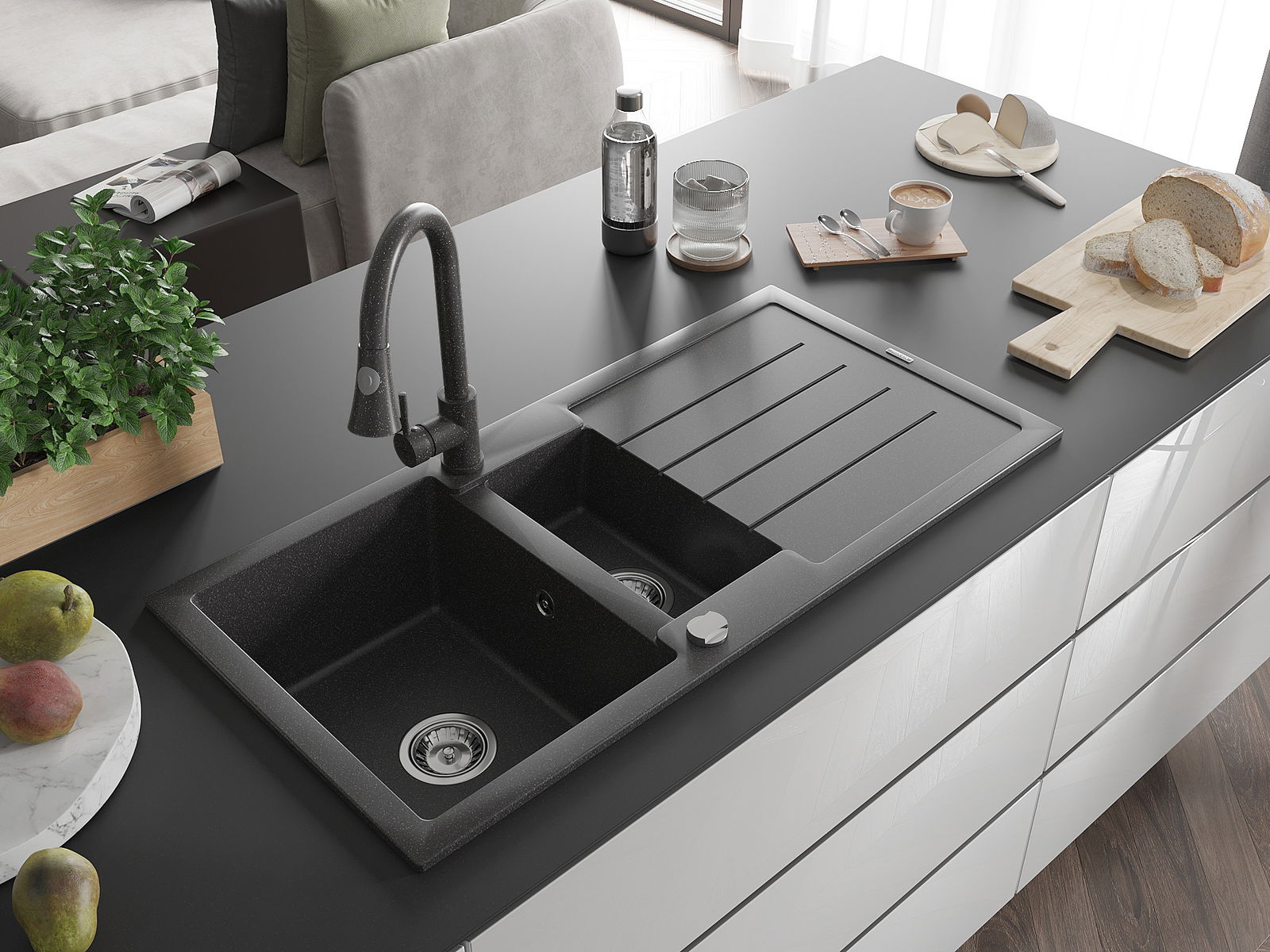 L'évier est fabriqué en granit de haute qualité. Il constitue un complément élégant et surtout pratique pour toute cuisine, quel que soit son style. La qualité et la durabilité du granit garantissent de nombreuses années d'utilisation.