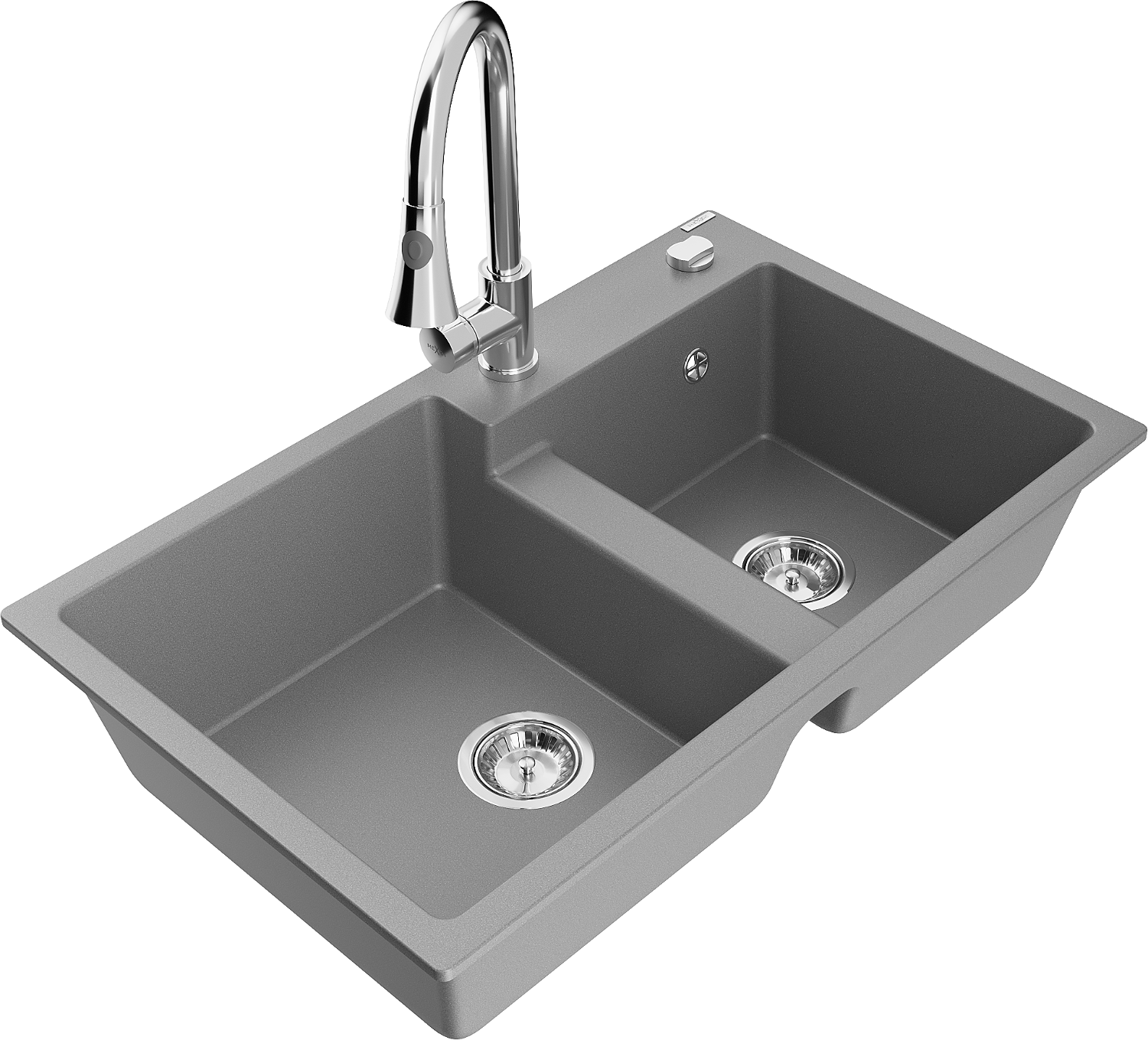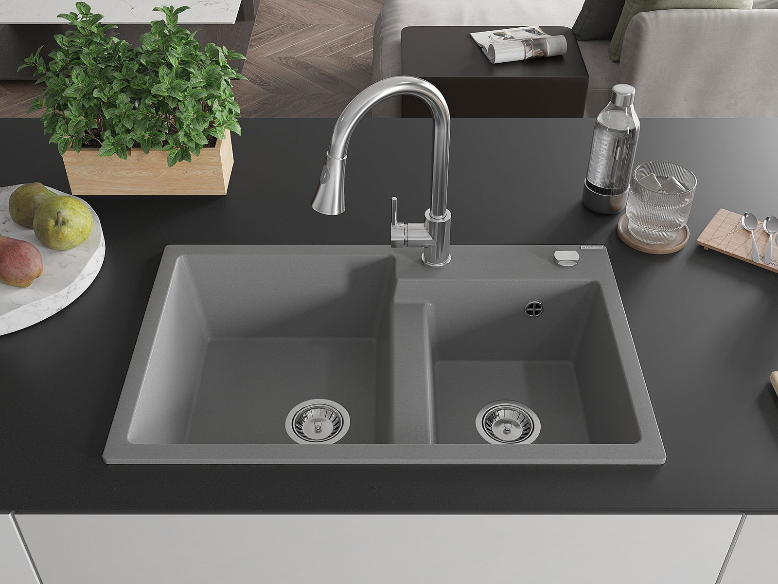 Mexen Tomas évier de cuisine en granit à 2 bacs avec robinet de cuisine Elia, gris - 6516-71-670101-00