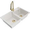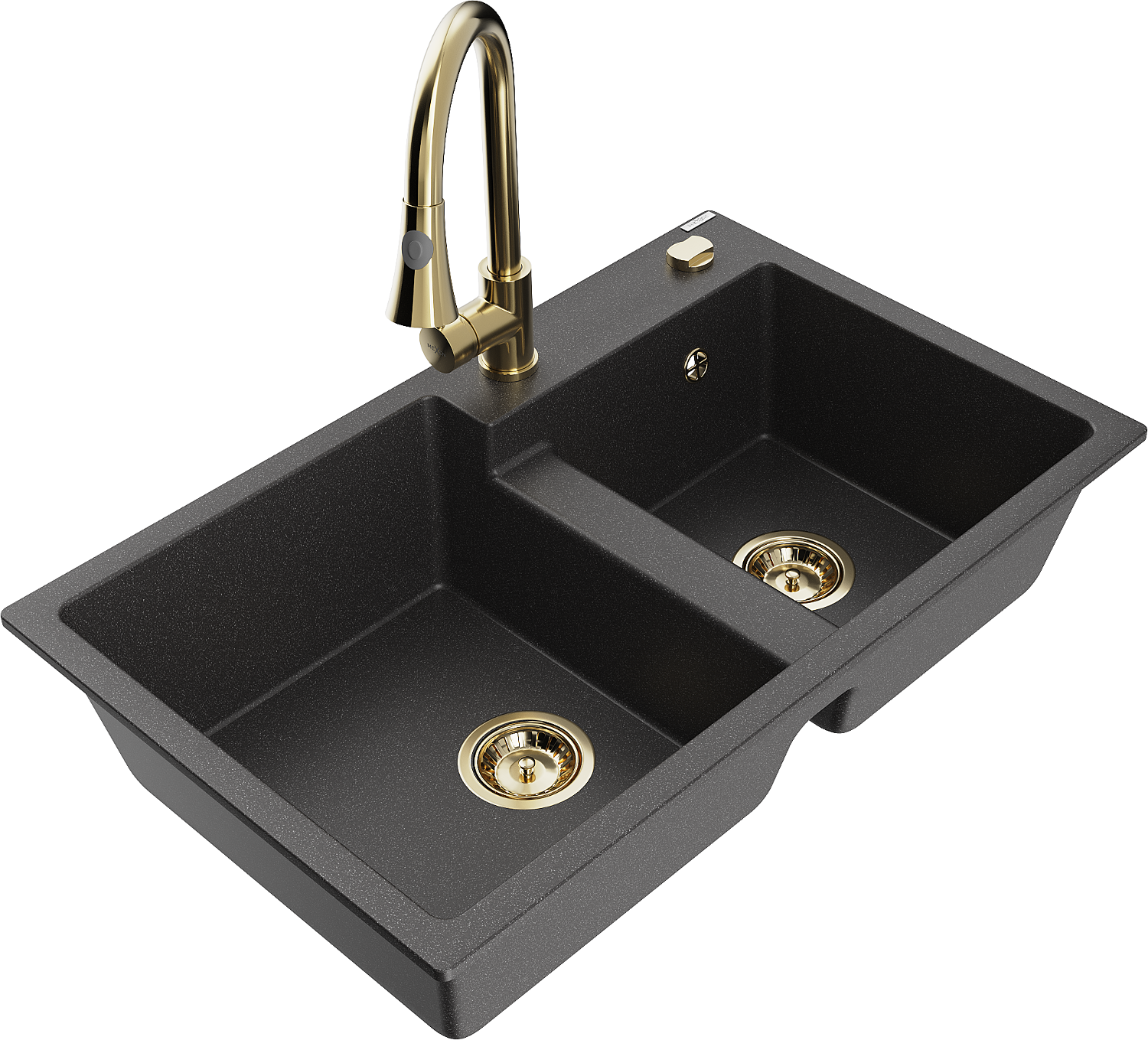 Mexen Tomas évier en granit à 2 bacs avec robinet de cuisine Elia, noir tacheté - 6516-76-670101-50