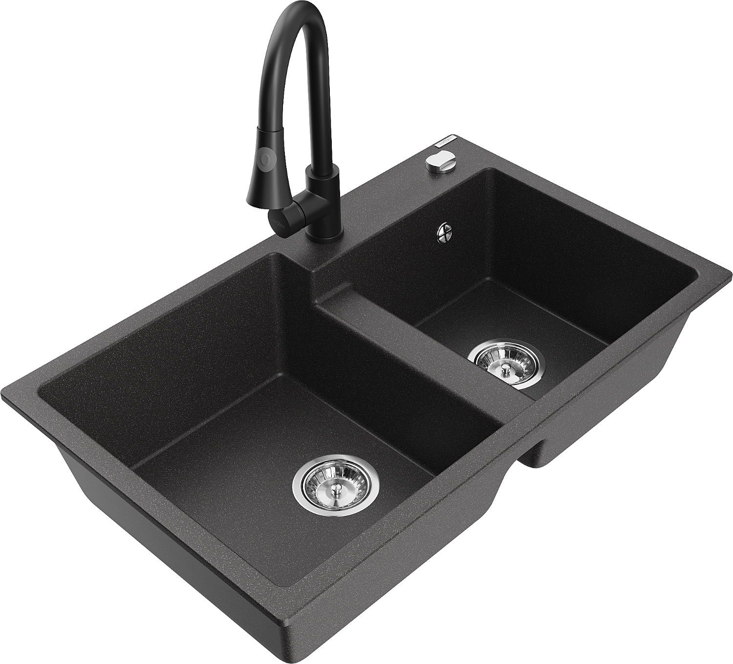 Mexen Tomas évier en granit 2 bacs avec mitigeur de cuisine Elia, noir moucheté - 6516-76-670101-70