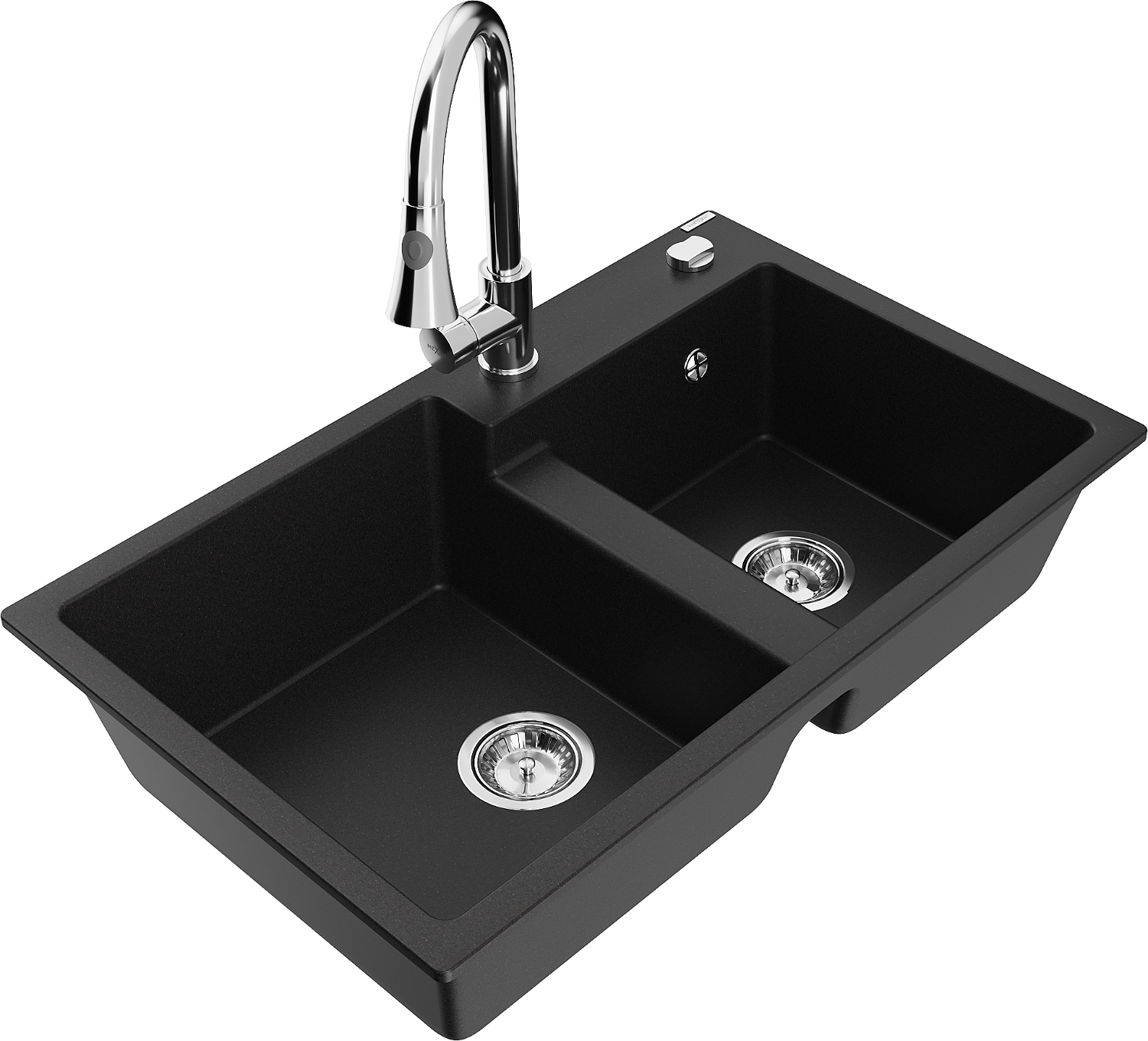 Mexen Tomas évier en granit à 2 bacs avec robinet de cuisine Elia, noir - 6516-77-670101-00