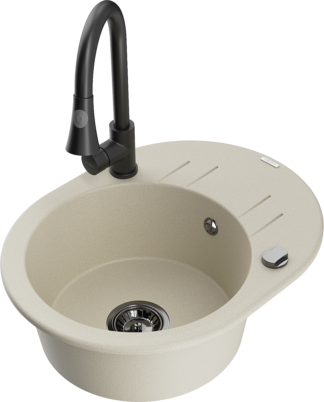 Mexen Kevin évier granit 1 bac avec égouttoir et mitigeur de cuisine Elia, beige - 6517-69-670101-70