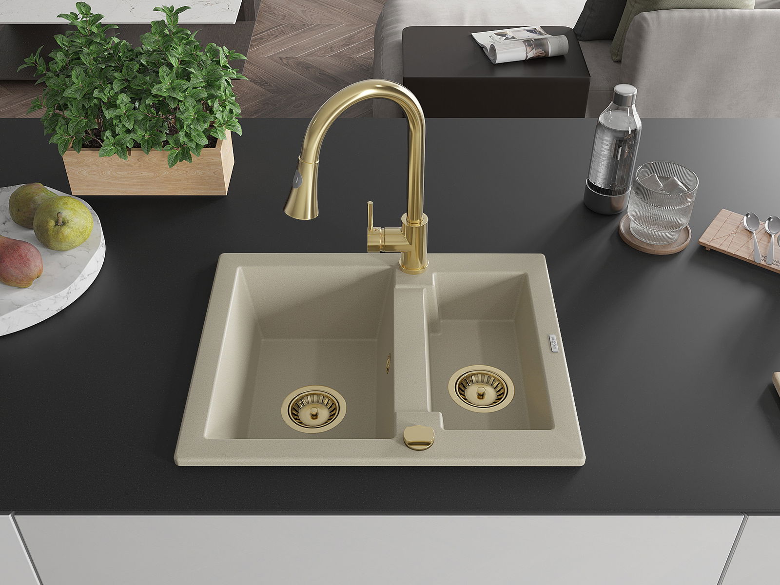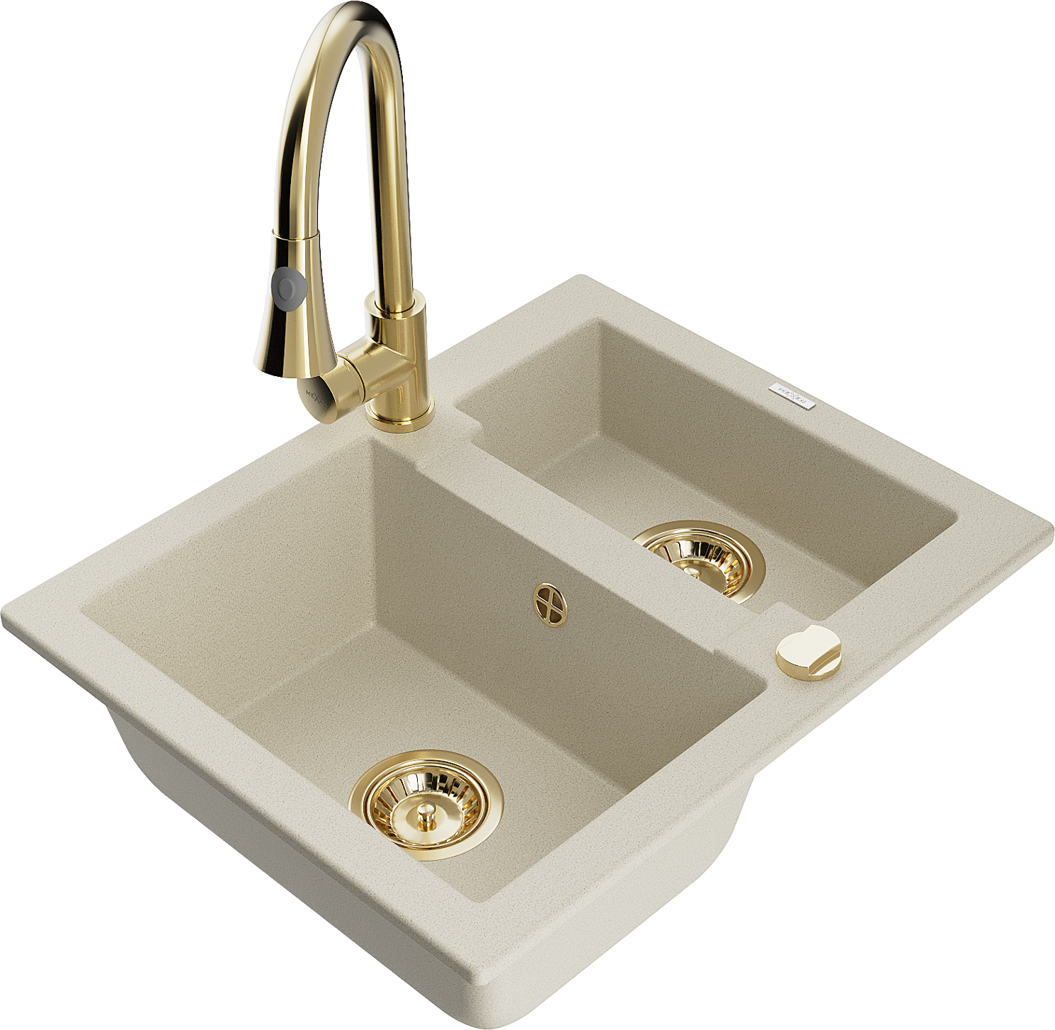 Mexen Carlos évier en granit 1,5 bac avec mitigeur de cuisine Elia, beige - 6518-69-670101-50