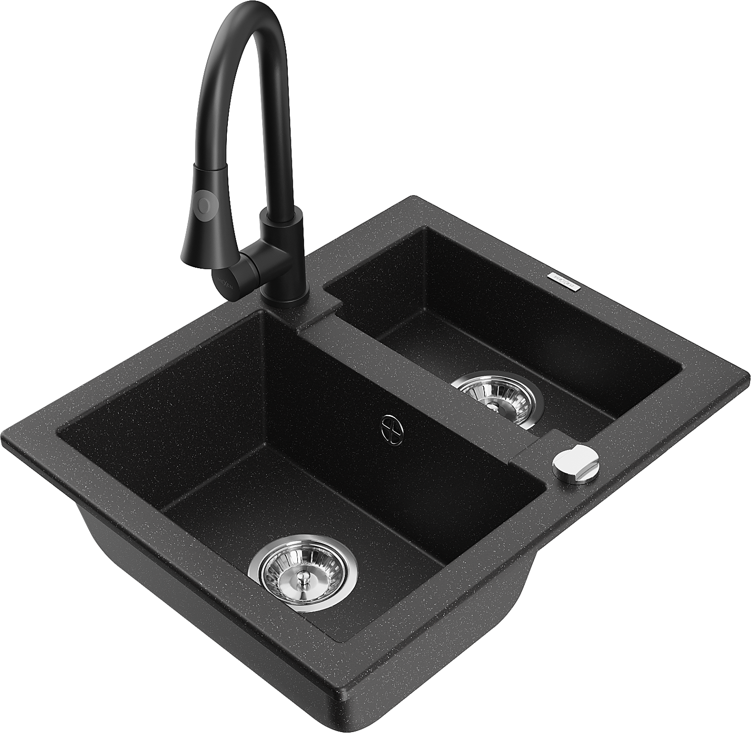 Mexen Carlos évier en granit 1,5 bac avec robinet de cuisine Elia, noir/argent métallisé - 6518-73-670101-70