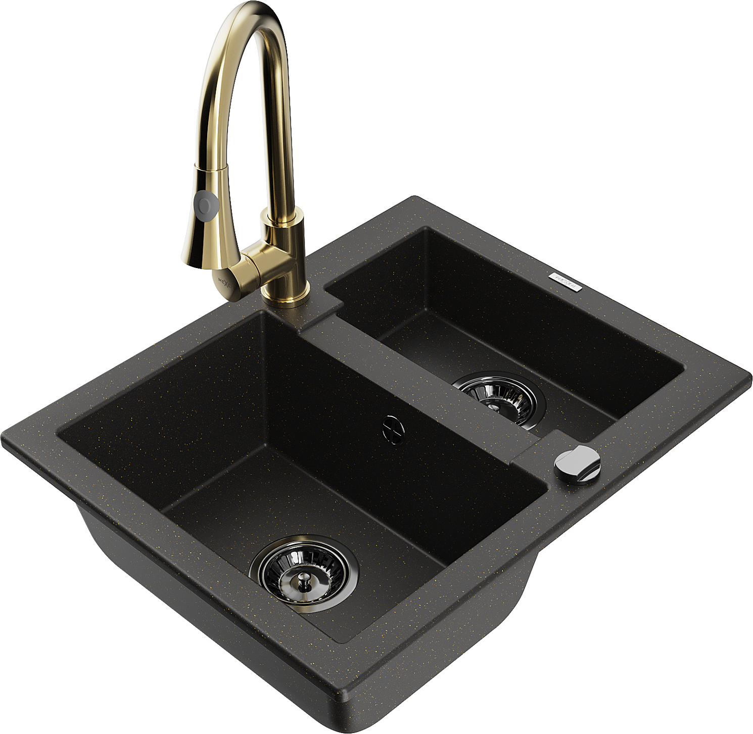 Mexen Carlos évier en granit 1,5 bac avec robinet de cuisine Elia, noir/doré métallique - 6518-75-670101-50-B
