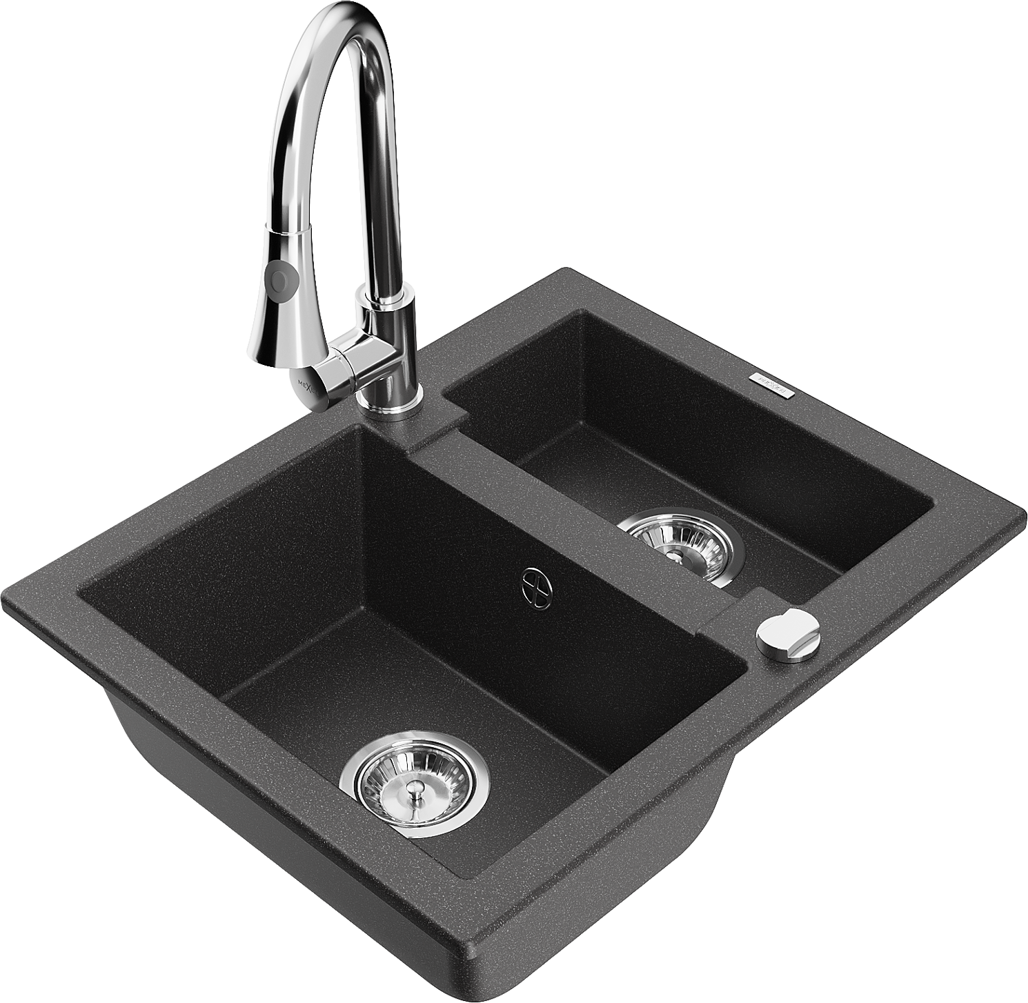 Mexen Carlos évier en granit 1,5 bac avec mitigeur de cuisine Elia, noir moucheté - 6518-76-670101-00