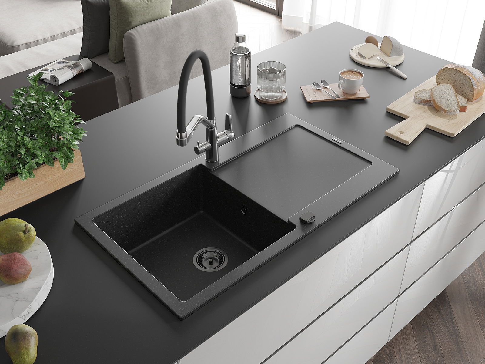 L'évier est fabriqué en granit de haute qualité. Il constitue un complément élégant et surtout pratique pour toute cuisine, quel que soit son style. La qualité et la durabilité du granit garantissent de nombreuses années d'utilisation.
