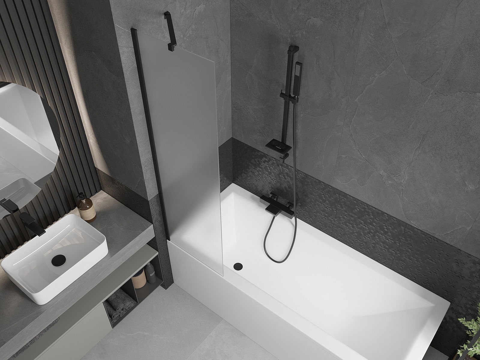 Mexen Next écran de baignoire à 1 volet 50 x 150 cm, dépoli, noir - 895-050-000-00-30-70