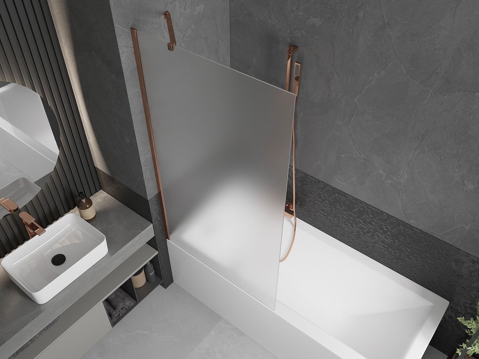 Mexen Next paroi de douche 1-volet 90 x 150 cm, givre, or rose - 895-090-000-00-30-60