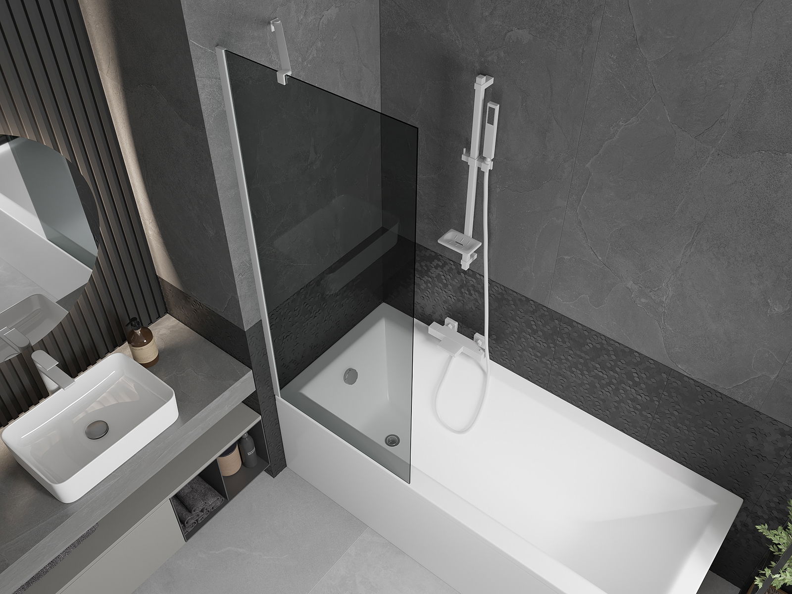 Protection efficace contre les éclaboussures d'eau pendant le bain. Le pare-baignoire est doté de joints qui s'adaptent parfaitement à la vitre et au rebord de la baignoire. Solution fonctionnelle garantissant sécurité et nettoyage facile.