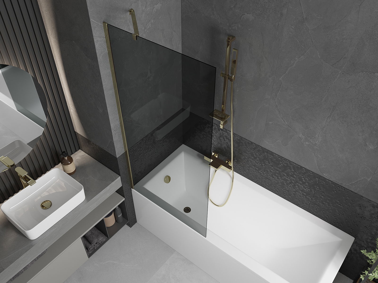 Mexen Next paroi de baignoire à 1 volet 80 x 150 cm, graphite, doré - 895-080-000-00-40-50
