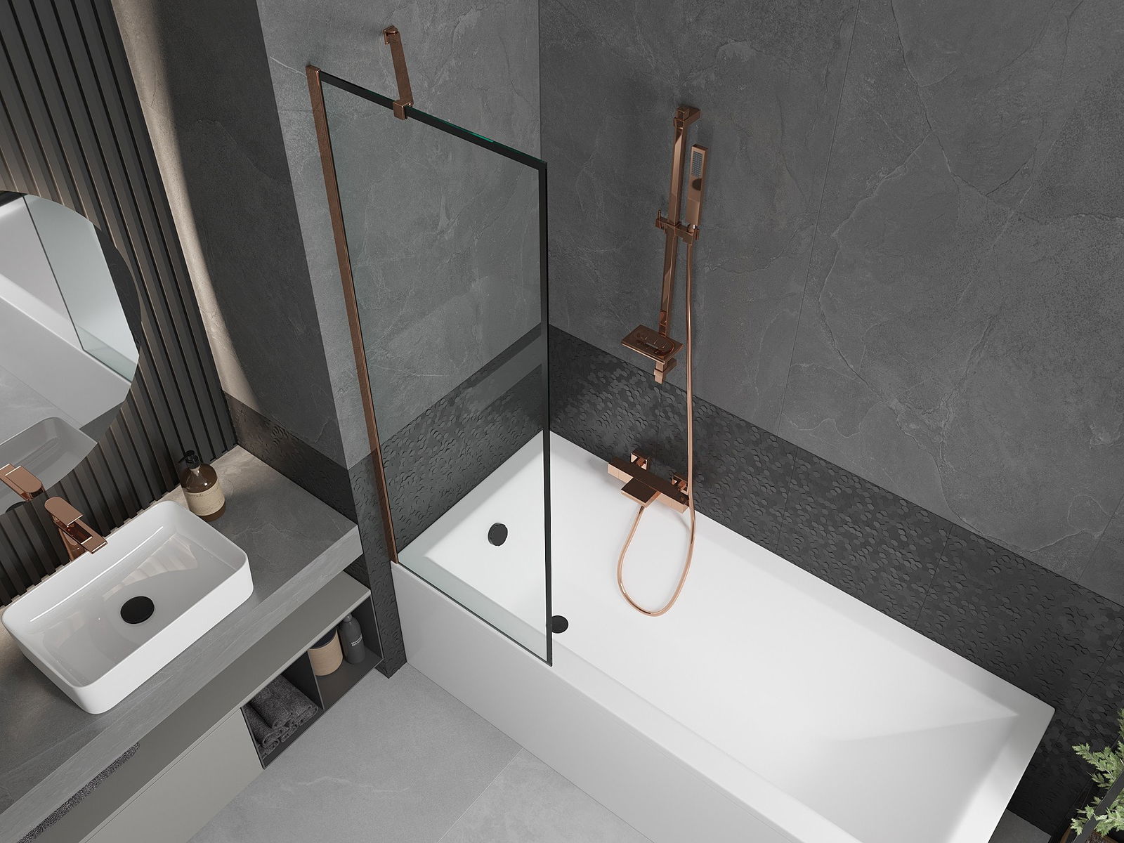 Mexen Next paroi de baignoire 1 panneau 60 x 150 cm, cadre noir, or rose - 895-060-000-00-70-60