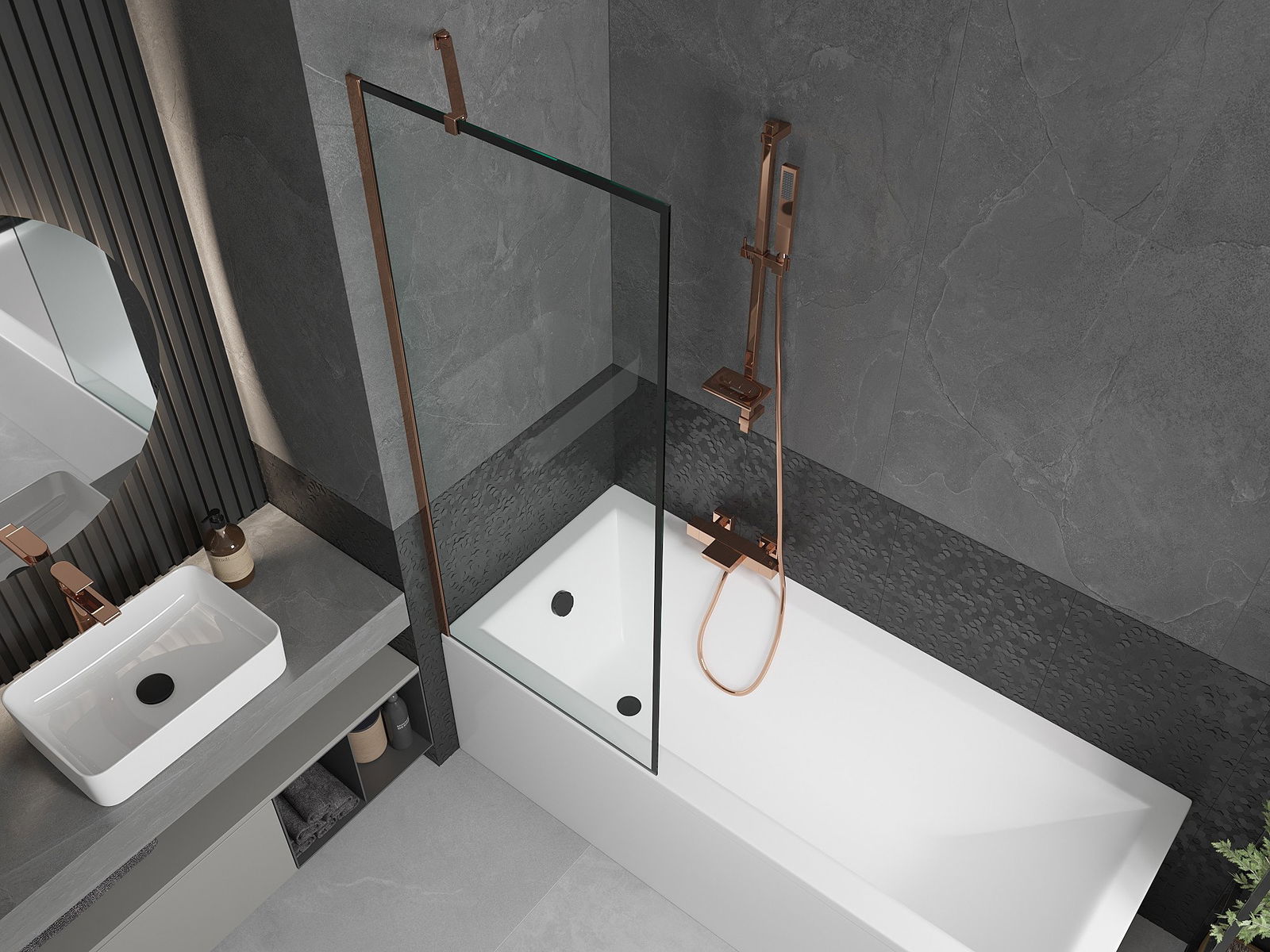 Paroi de baignoire Mexen Next 1 volet 70 x 150 cm, cadre noir, or rose - 895-070-000-00-70-60