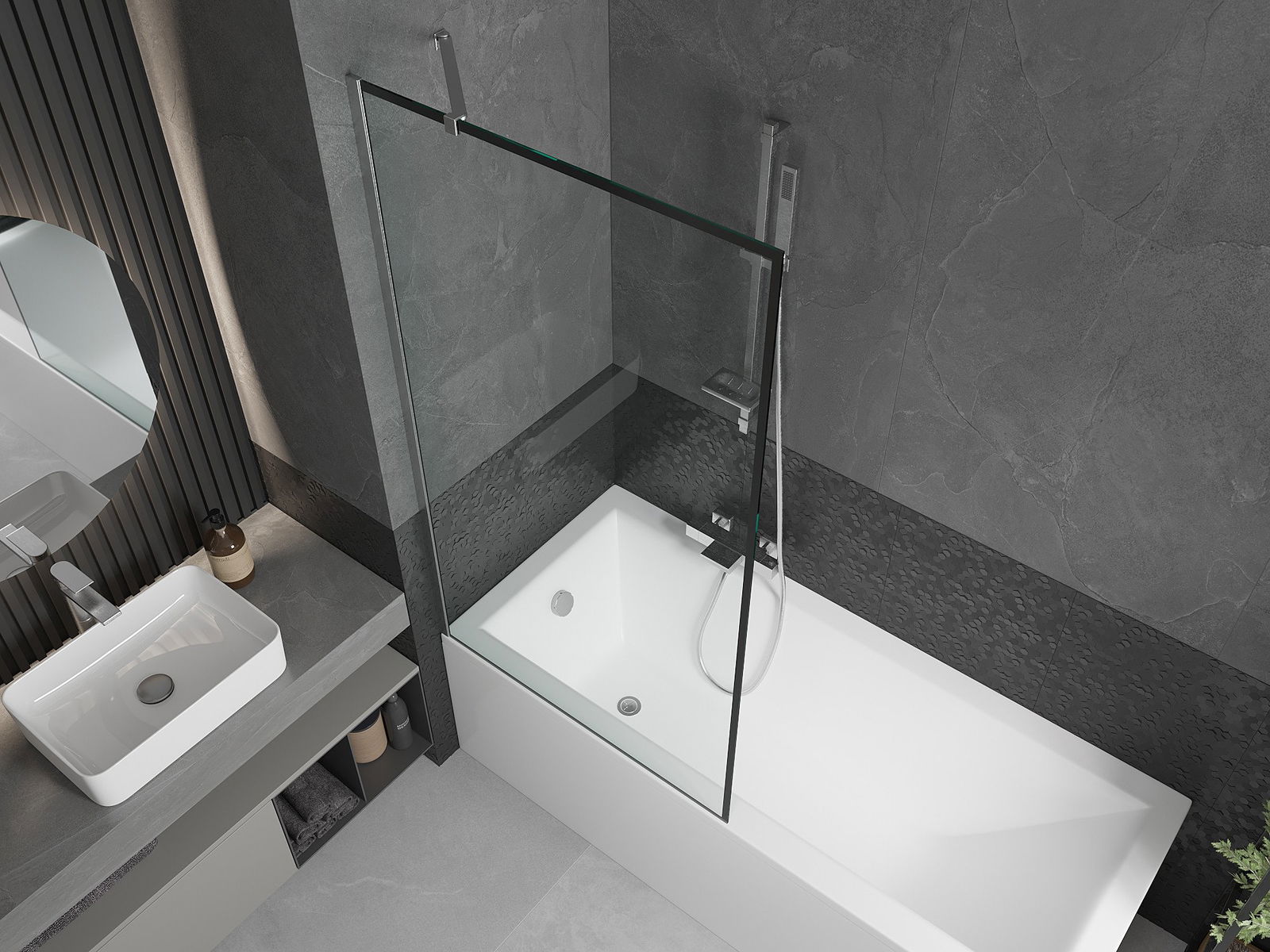 Paroi de baignoire Mexen Next 1 volet 90 x 150 cm, cadre noir, chrome - 895-090-000-00-70-01