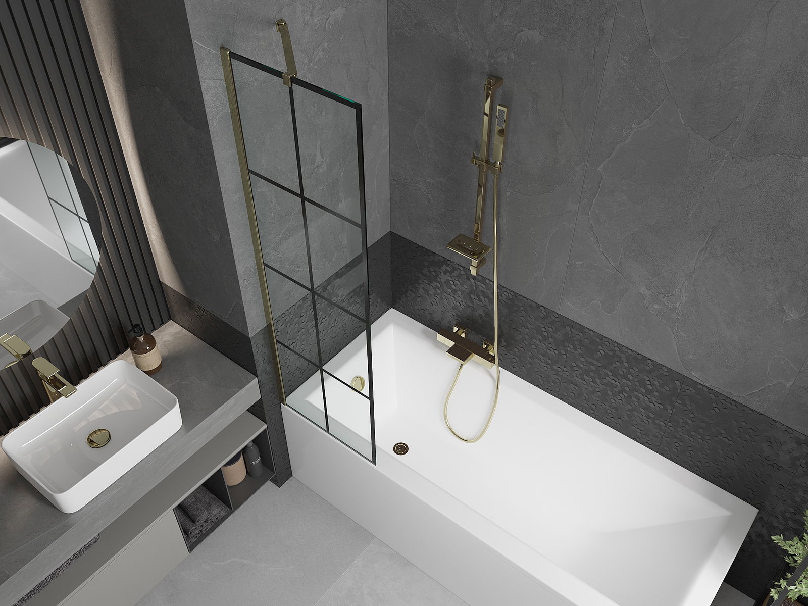 Paroi de baignoire à 1 vantail Mexen Next 50 x 150 cm, grille noire, dorée - 895-050-000-00-77-50
