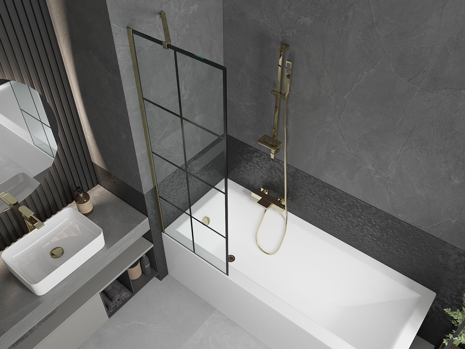 Mexen Next paroi de baignoire à 1 volet 60 x 150 cm, grille noire, dorée - 895-060-000-00-77-50