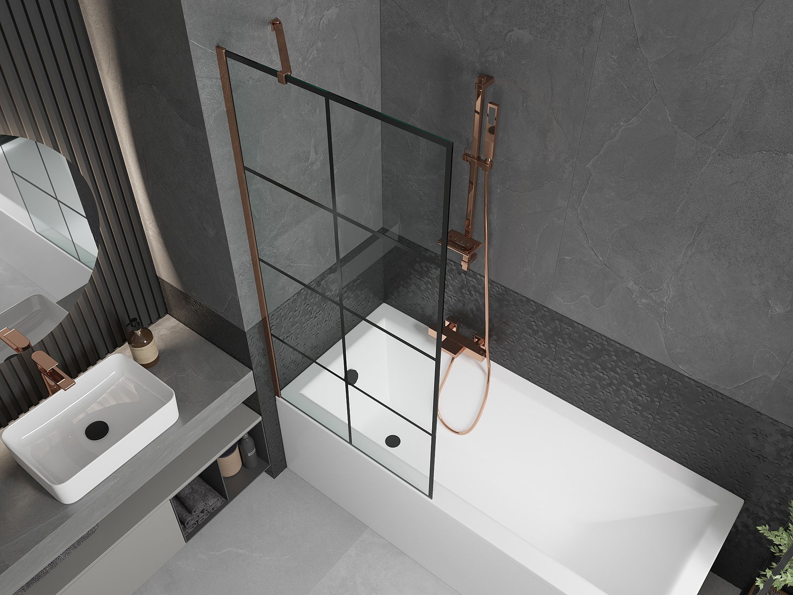 Mexen Next paroi de baignoire 1-volet 80 x 150 cm, grille noire, or rose - 895-080-000-00-77-60