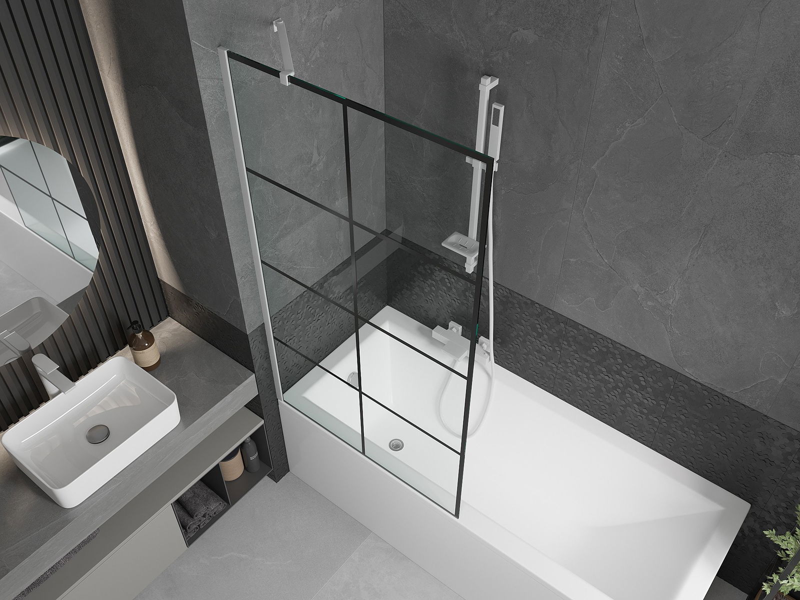 Paroi de baignoire Mexen Next 1 volet 90 x 150 cm, grille noire, blanc - 895-090-000-00-77-20
