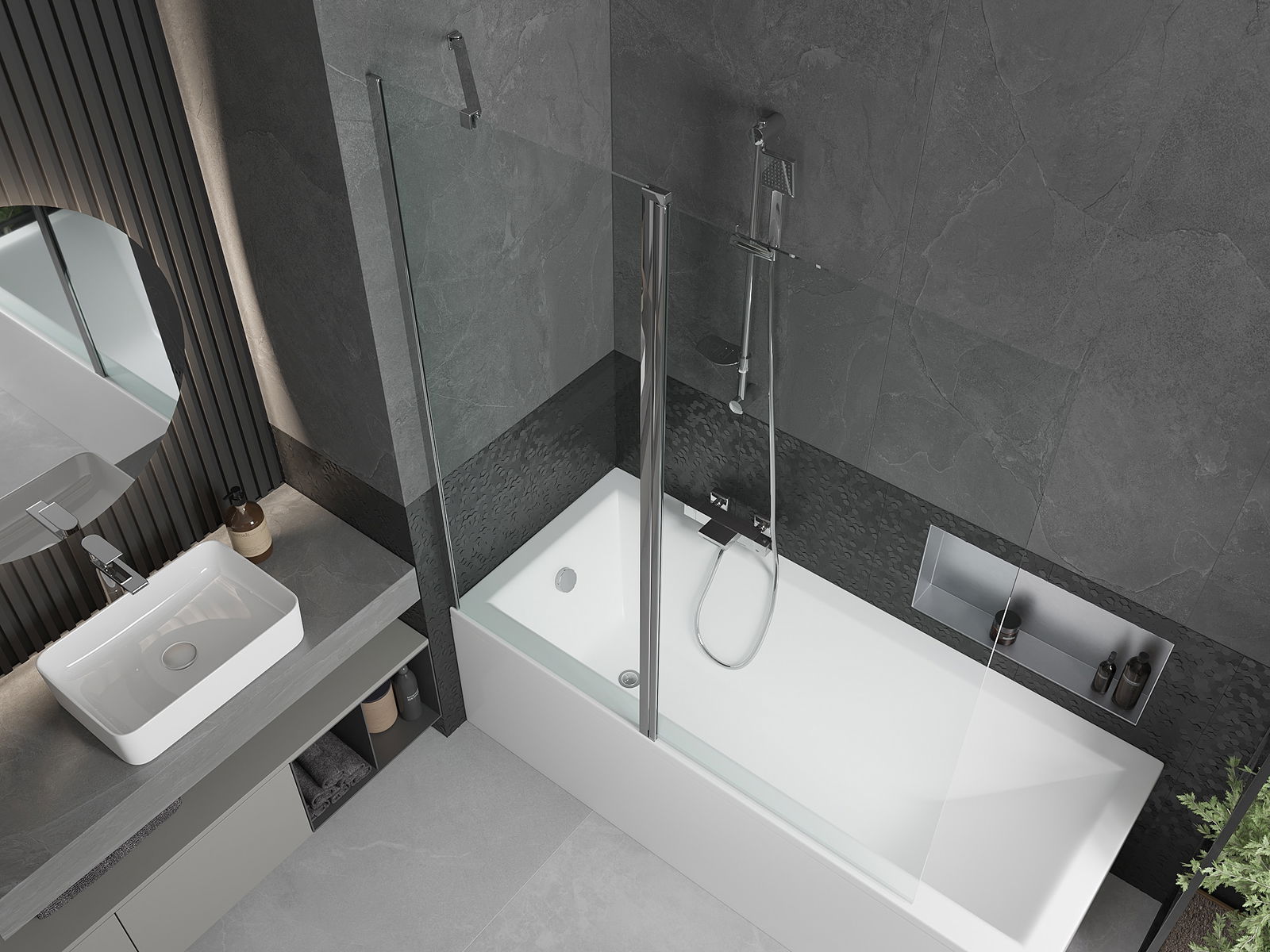Protection efficace contre les éclaboussures d'eau pendant le bain. Le pare-baignoire est doté de joints qui s'adaptent parfaitement à la vitre et au rebord de la baignoire. Solution fonctionnelle garantissant sécurité et nettoyage facile.
