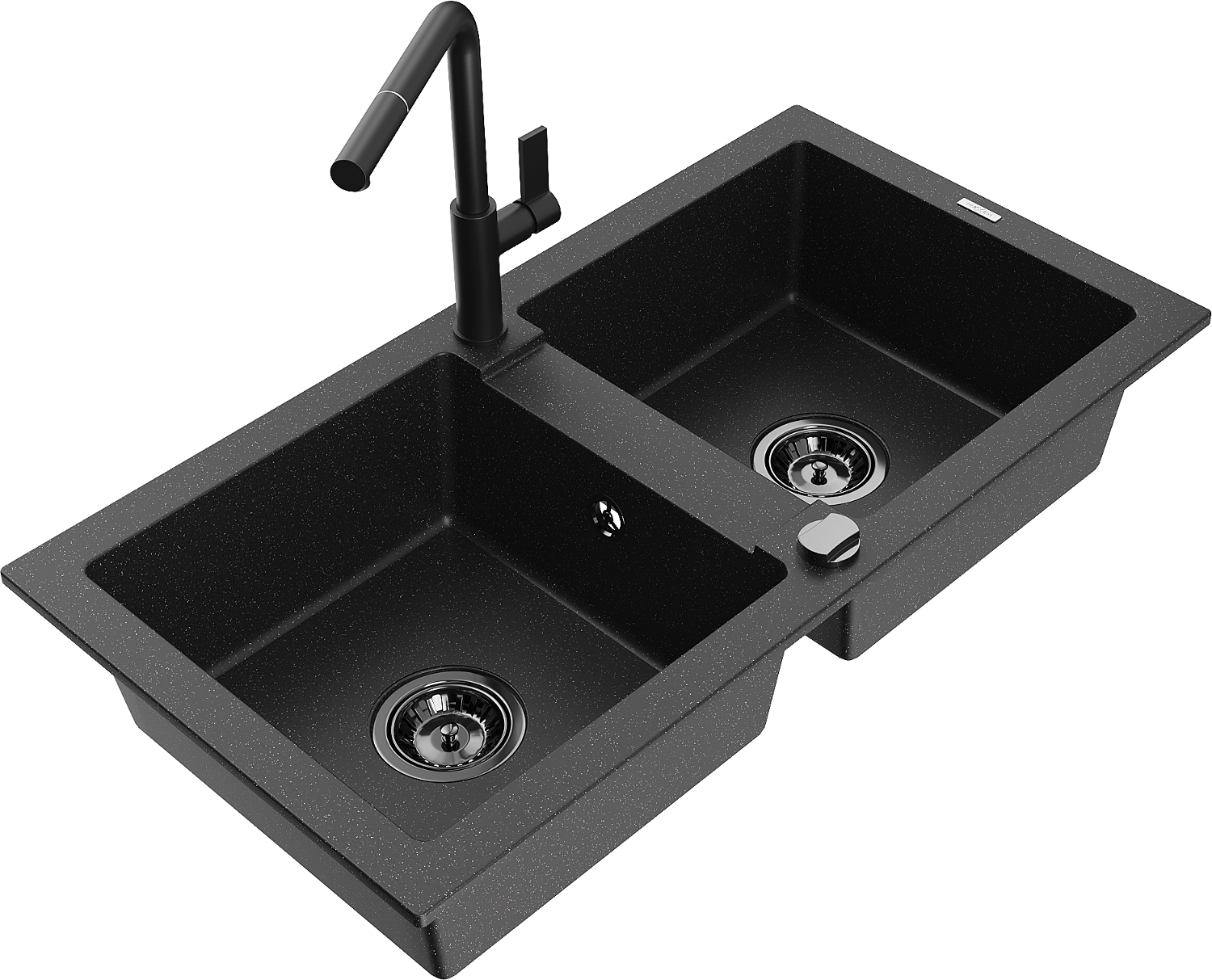 Mexen Mario évier en granit 2 cuves avec robinet de cuisine Flora, noir/métallique argent - 6504-73-670401-70-B