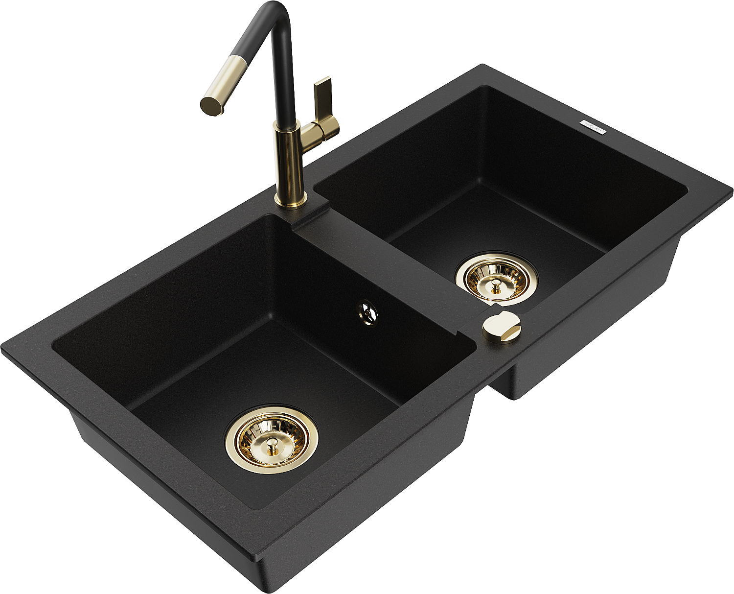 Mexen Mario évier en granit 2 bacs avec robinet de cuisine Flora, noir - 6504-77-670401-57-G