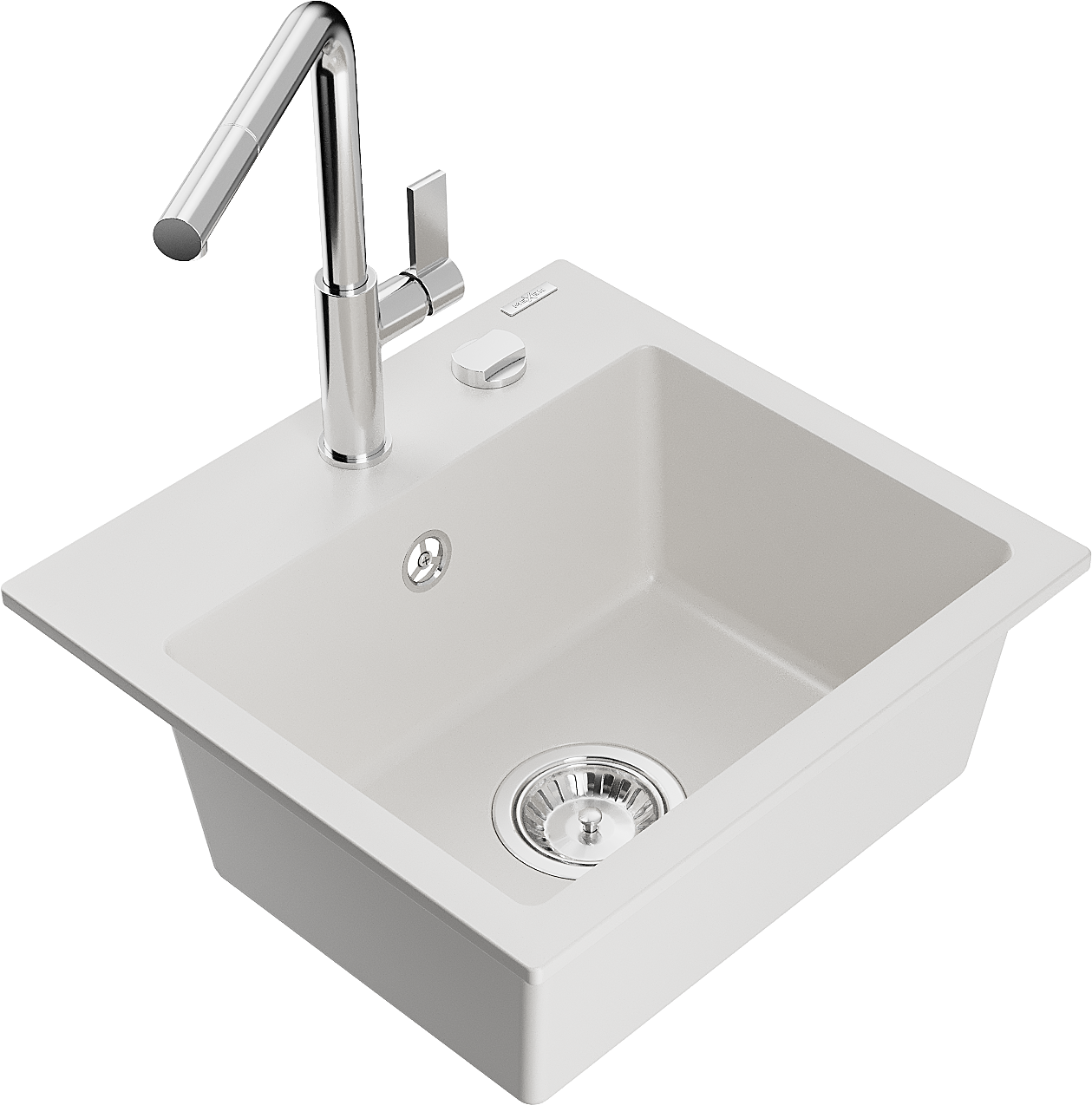 Mexen Milo évier de cuisine en granit 1 bac avec robinet de cuisine Flora, blanc - 6505-20-670401-00