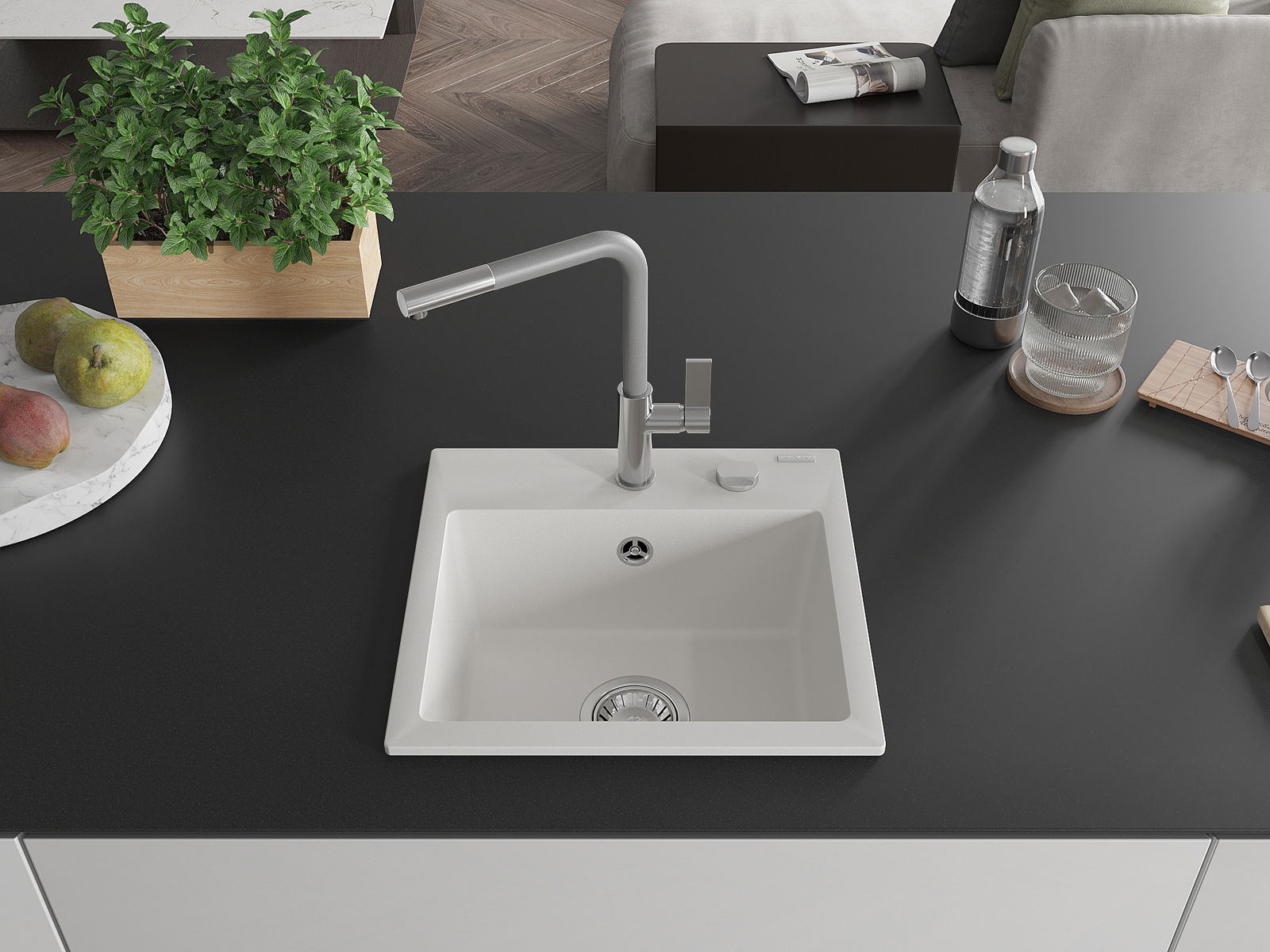La surface de l'évier est très bien trempée et se distingue par une résistance exceptionnelle aux dommages mécaniques et aux rayures. Ce matériau durable vous permettra de profiter de son bel aspect pendant de nombreuses années.