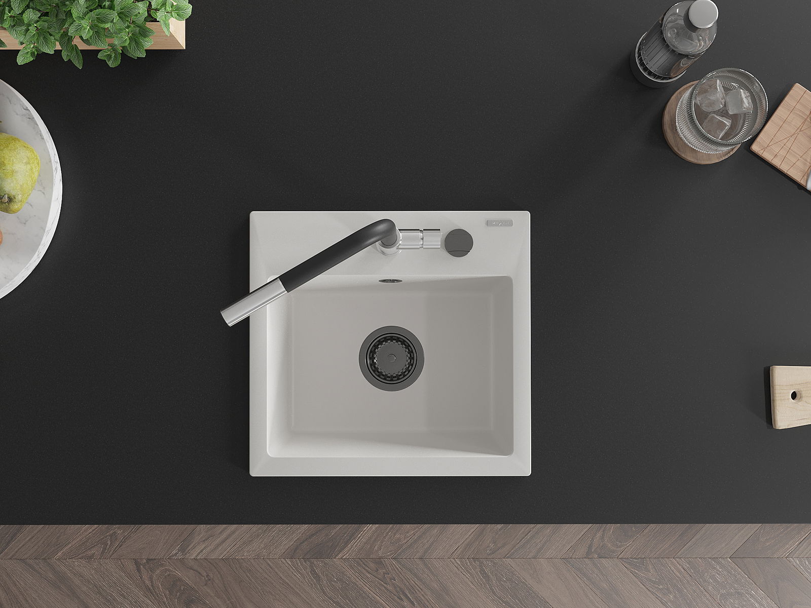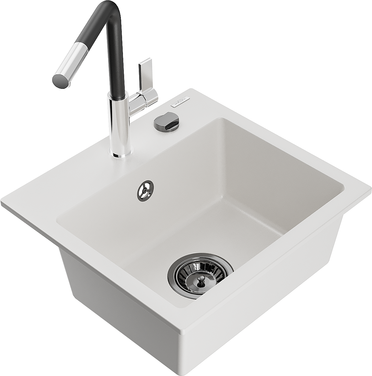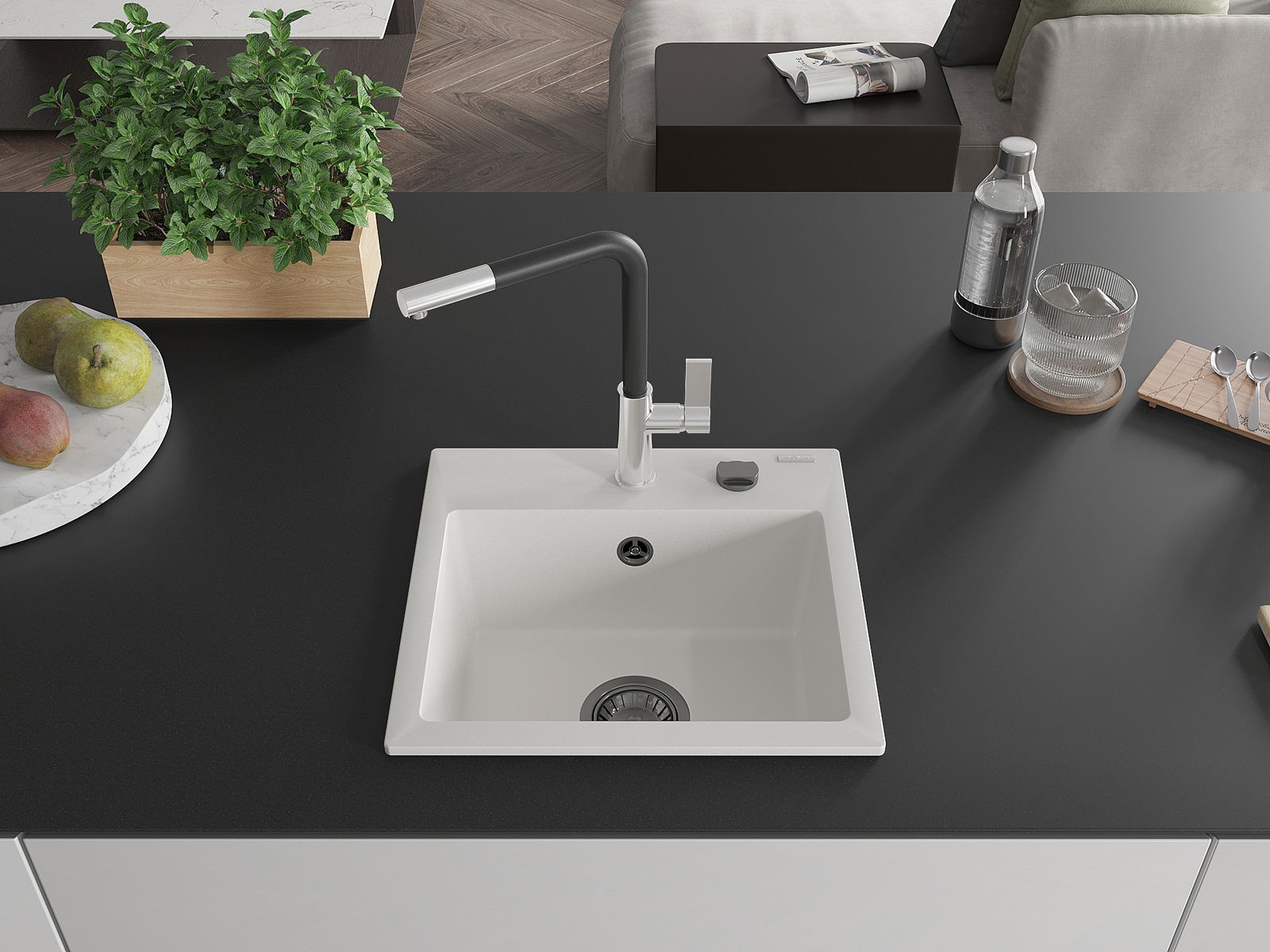 Mexen Milo évier en granit 1 bac avec robinet de cuisine Flora, blanc - 6505-20-670401-07-B