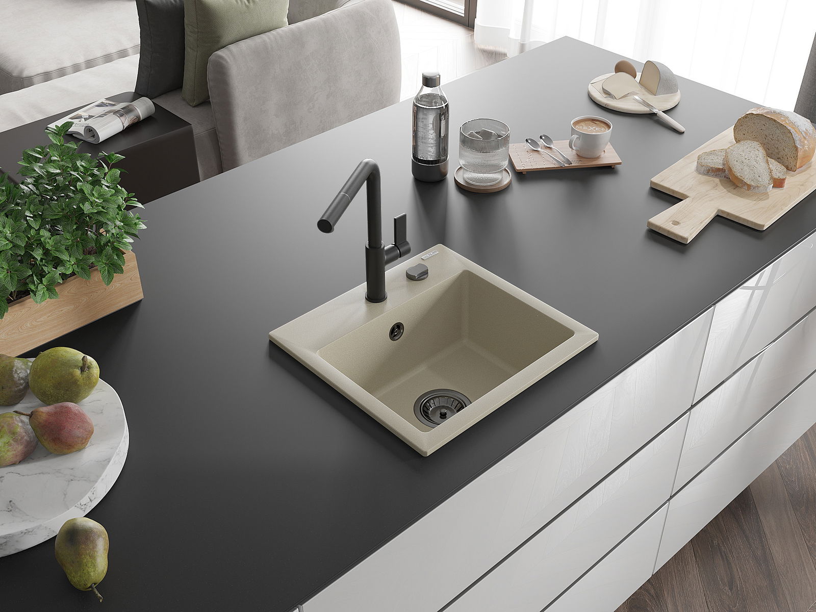 L'évier est fabriqué en granit de haute qualité. Il constitue un complément élégant et surtout pratique pour toute cuisine, quel que soit son style. La qualité et la durabilité du granit garantissent de nombreuses années d'utilisation.