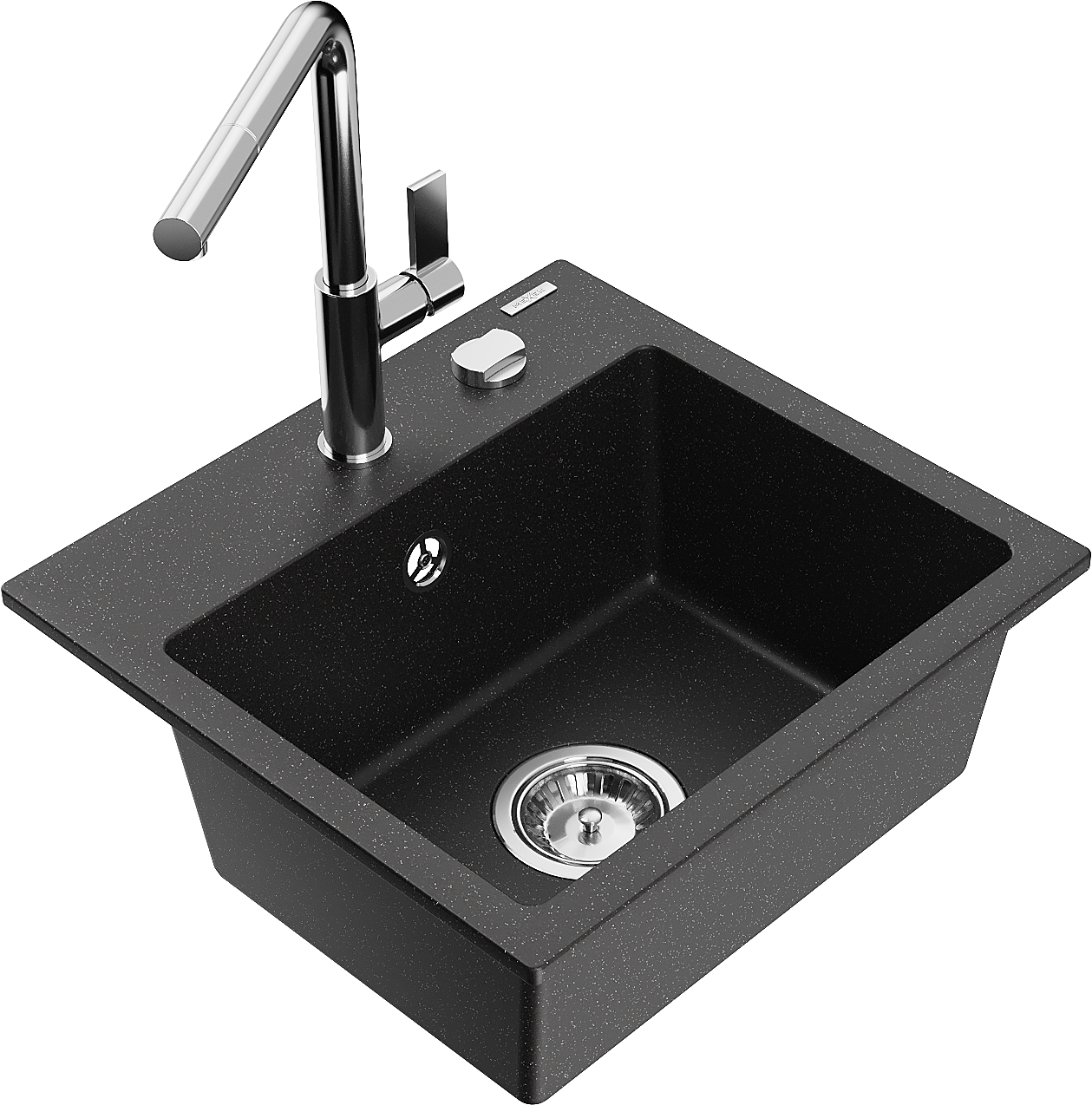 Mexen Milo évier en granit à 1 bac avec robinet cuisine Flora, noir/métallisé argenté - 6505-73-670401-00