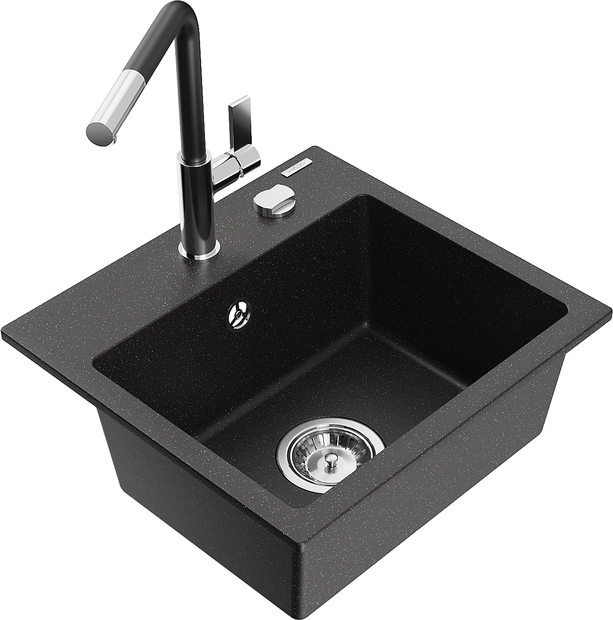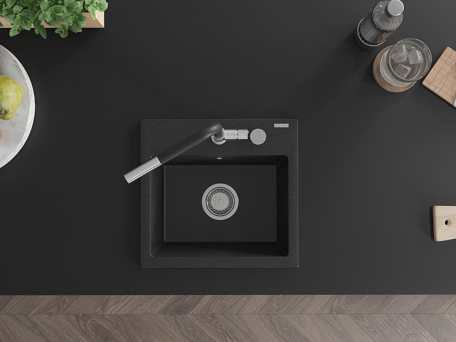 Mexen Milo évier en granit 1 bac avec mitigeur de cuisine Flora, noir/argent métallique - 6505-73-670401-07