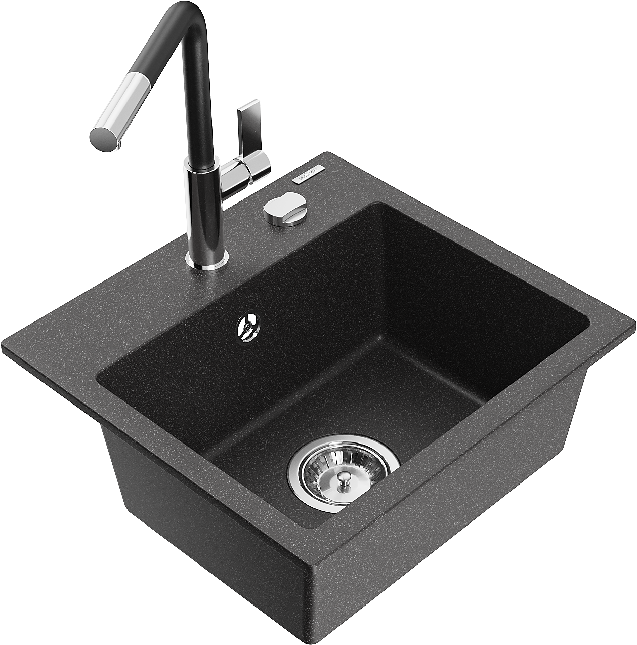 Mexen Milo évier en granit 1 cuve avec robinet de cuisine Flora, noir moucheté - 6505-76-670401-07