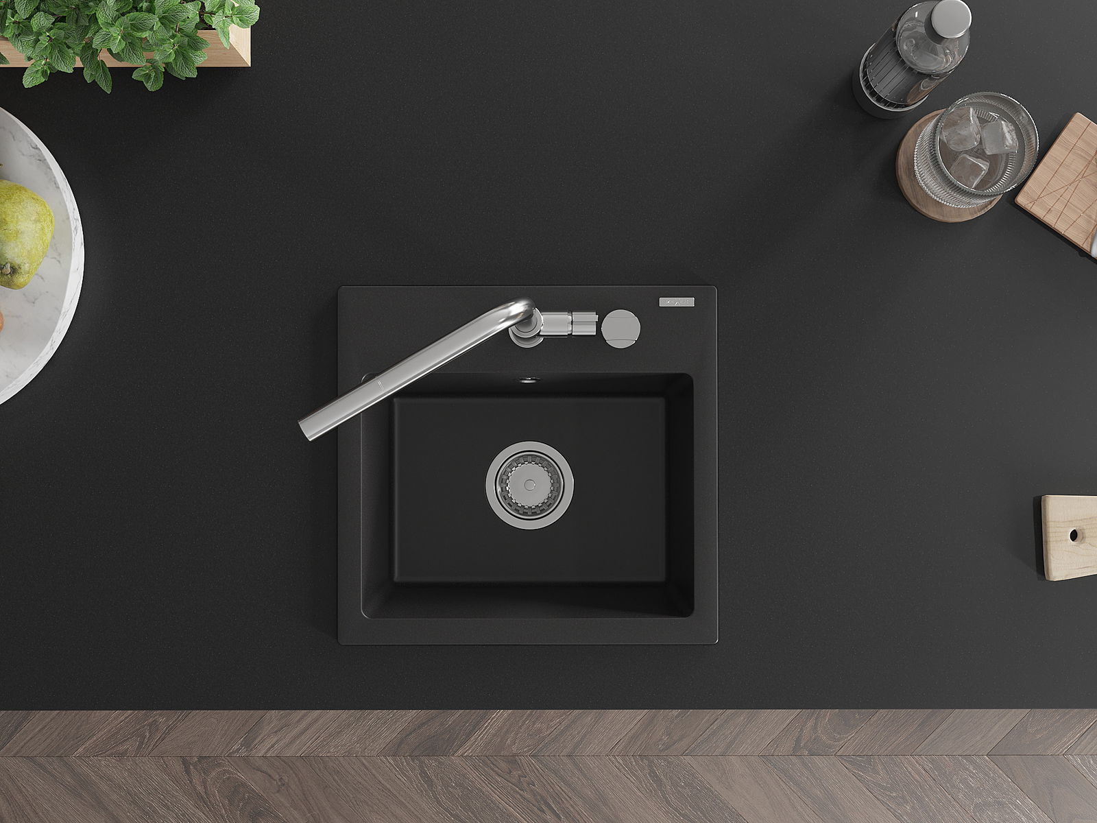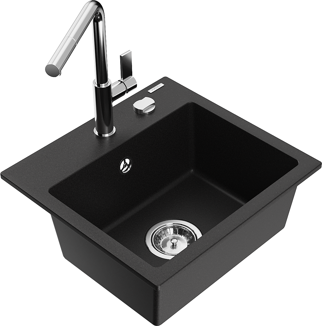 Mexen Milo évier en granit 1 bac avec robinet de cuisine Flora, noir - 6505-77-670401-00