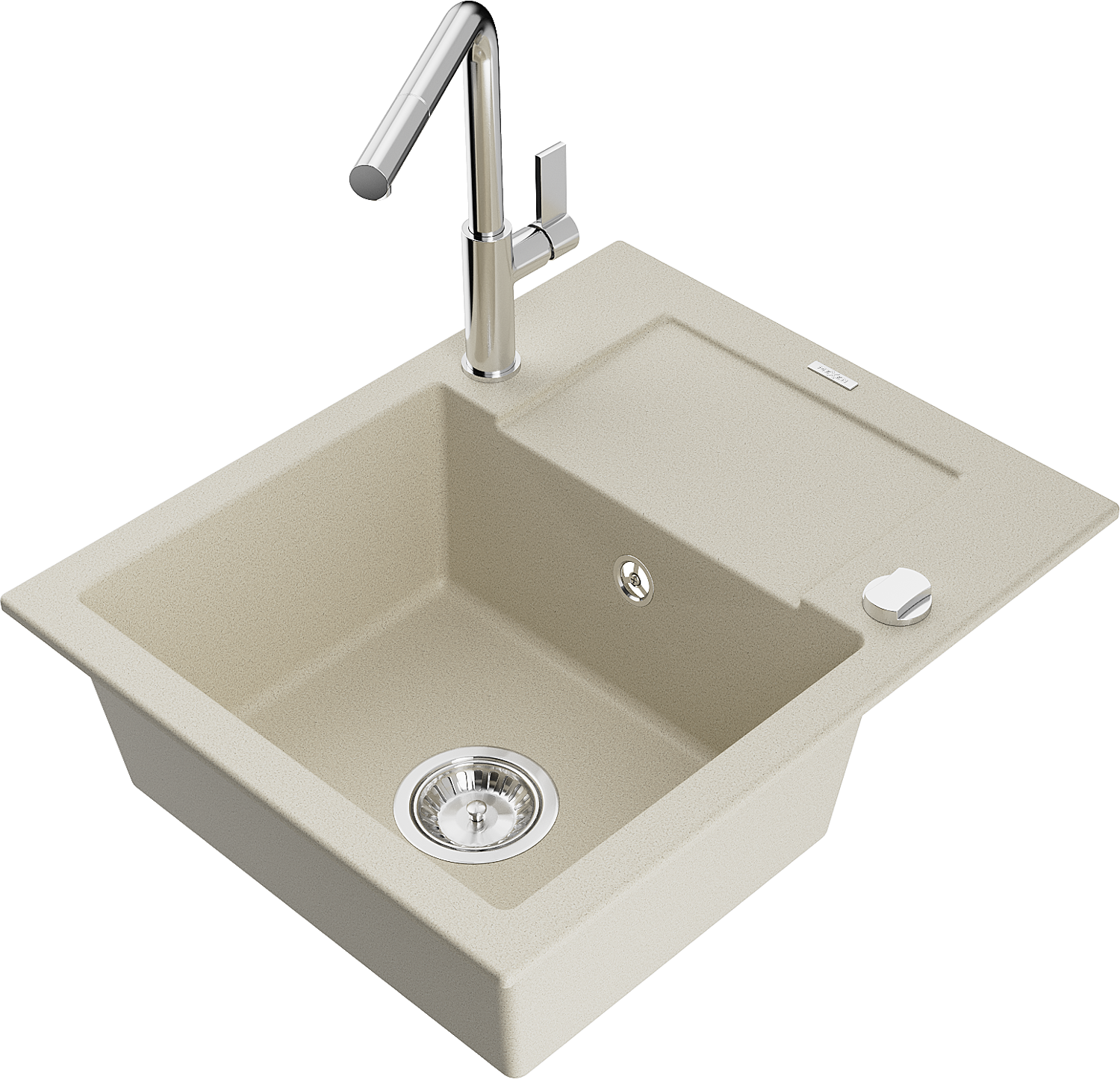 Mexen Enzo évier de cuisine en granit 1 bac avec égouttoir et robinet Flora, beige - 6506-69-670401-00