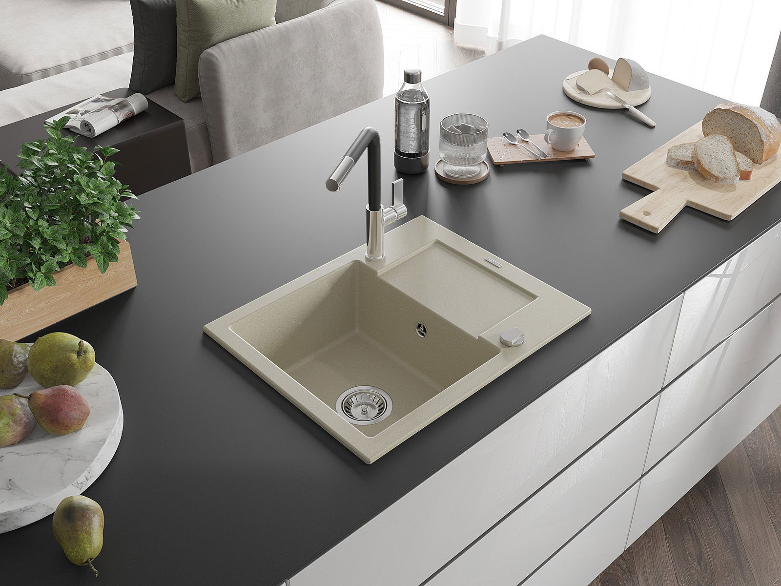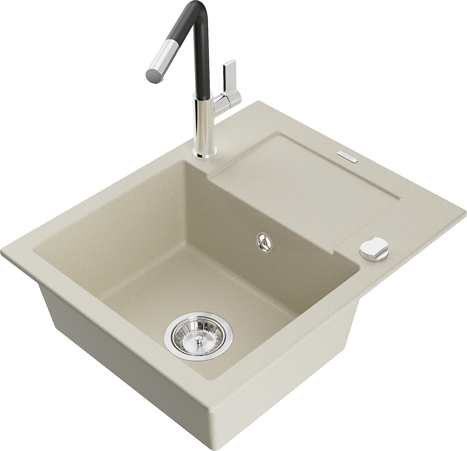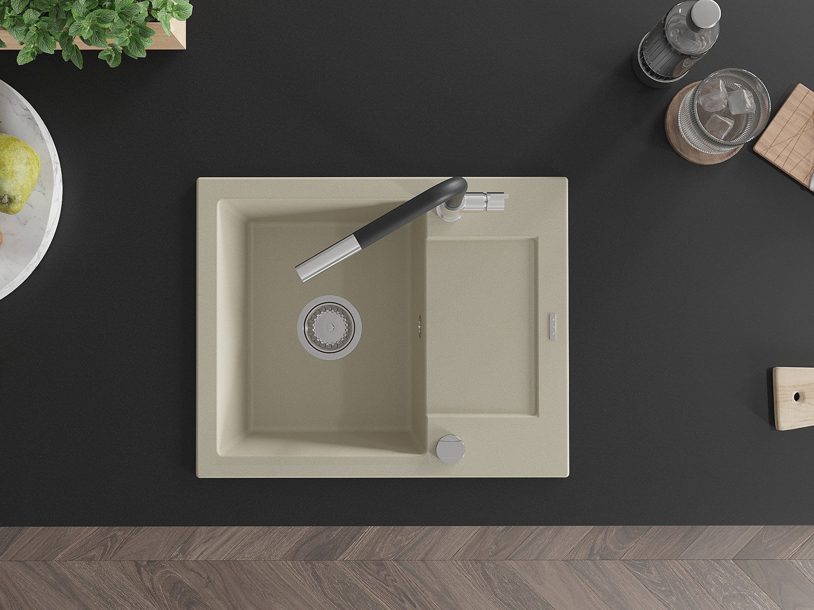 Mexen Enzo évier de cuisine en granit 1-bac avec égouttoir et robinet de cuisine Flora, beige - 6506-69-670401-07