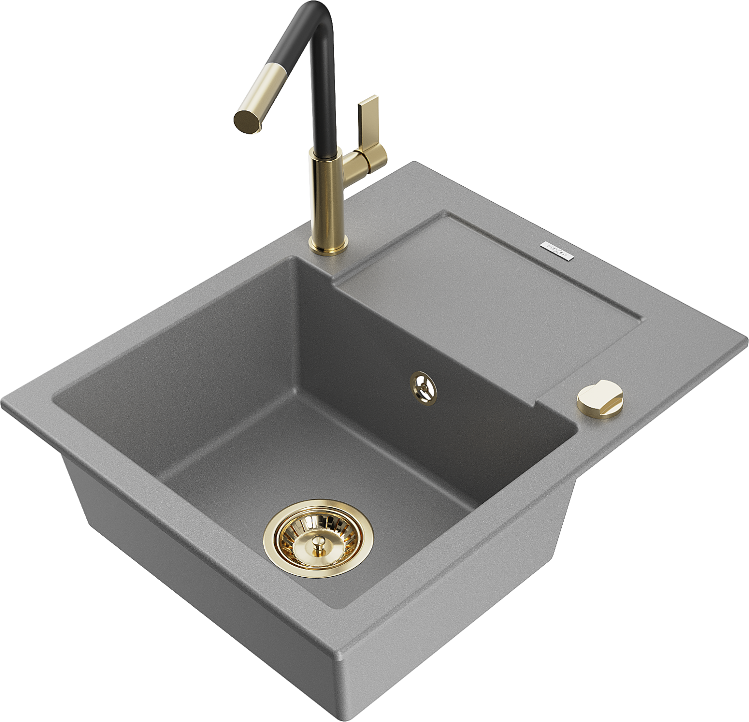 Mexen Enzo évier en granit 1 bac avec égouttoir et robinet de cuisine Flora, gris - 6506-71-670401-57-G
