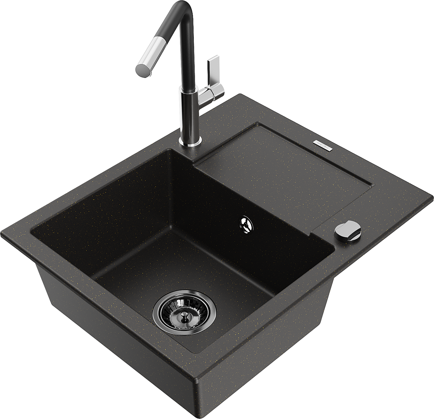 Mexen Enzo évier en granit 1 bac avec égouttoir et mitigeur cuisine Flora, noir/doré métallisé - 6506-75-670401-07-B