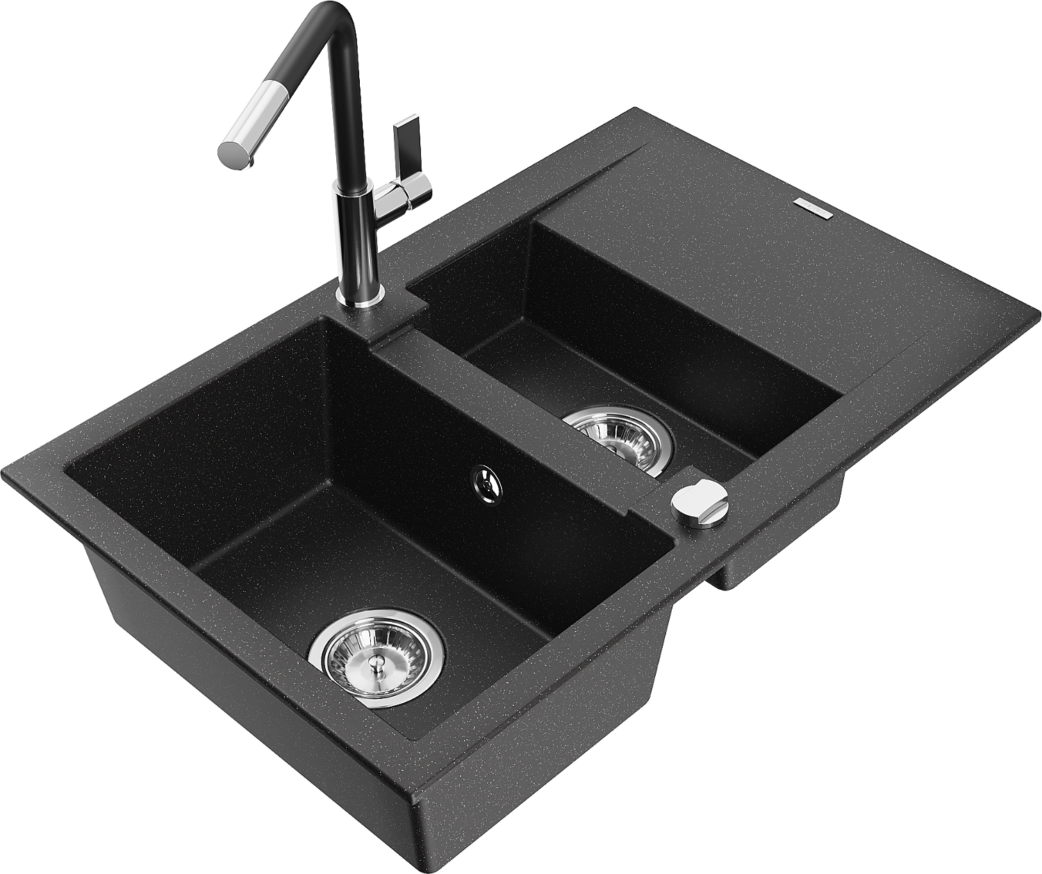 Mexen Gaspar évier en granit 1,5 bac avec égouttoir et robinet de cuisine Flora, noir/argent - 6507-73-670401-07