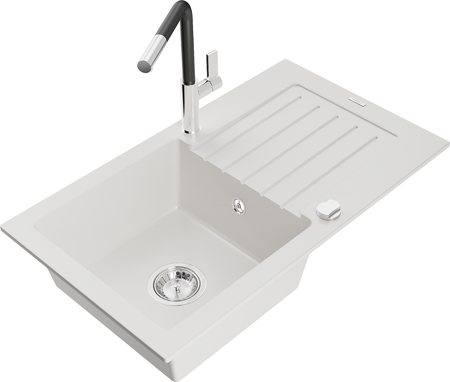 Mexen Pablo évier en granit 1 bac avec égouttoir et robinet de cuisine Flora, blanc - 6510-20-670401-07